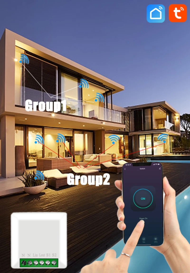 Управляйте включением и выключением устройства, синхронизацией, обратным отсчетом и другими функциями через мобильный телефон. Пока мобильный телефон имеет сеть, вы можете управлять модулем коммутатора дома.