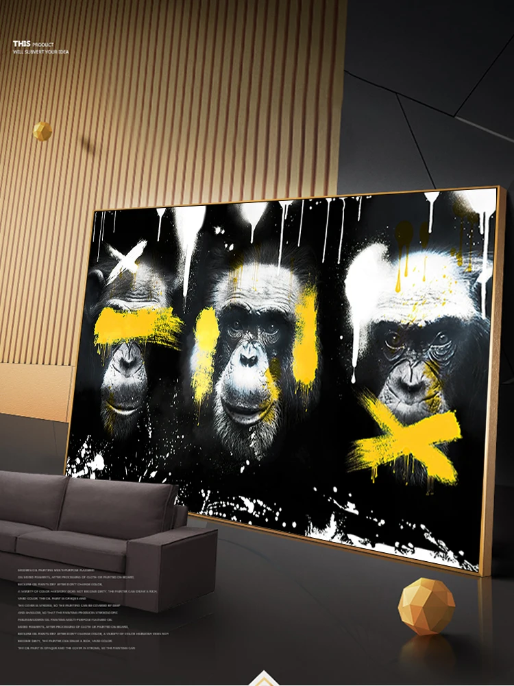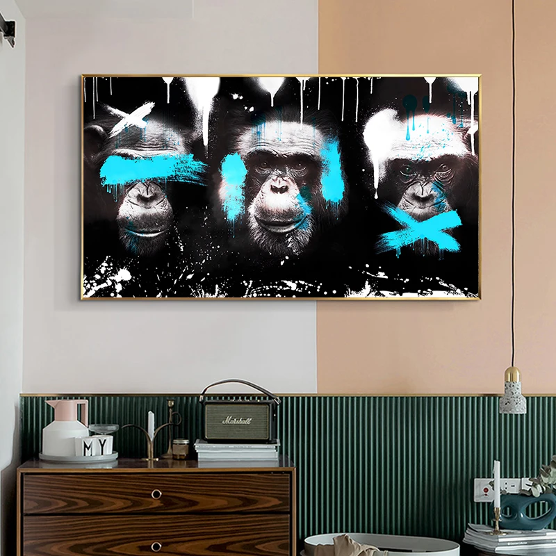 Картина на холсте с 3 обезьянами, Современное абстрактное украшение для комнаты, художественный плакат и печать, Настенная картина для гостиной, животные