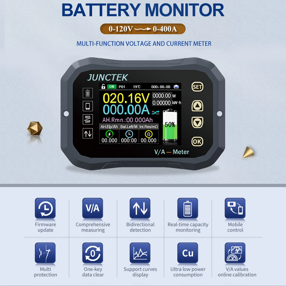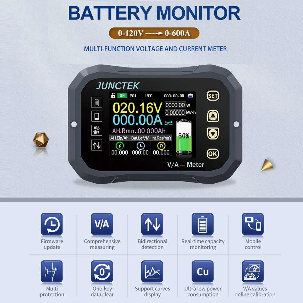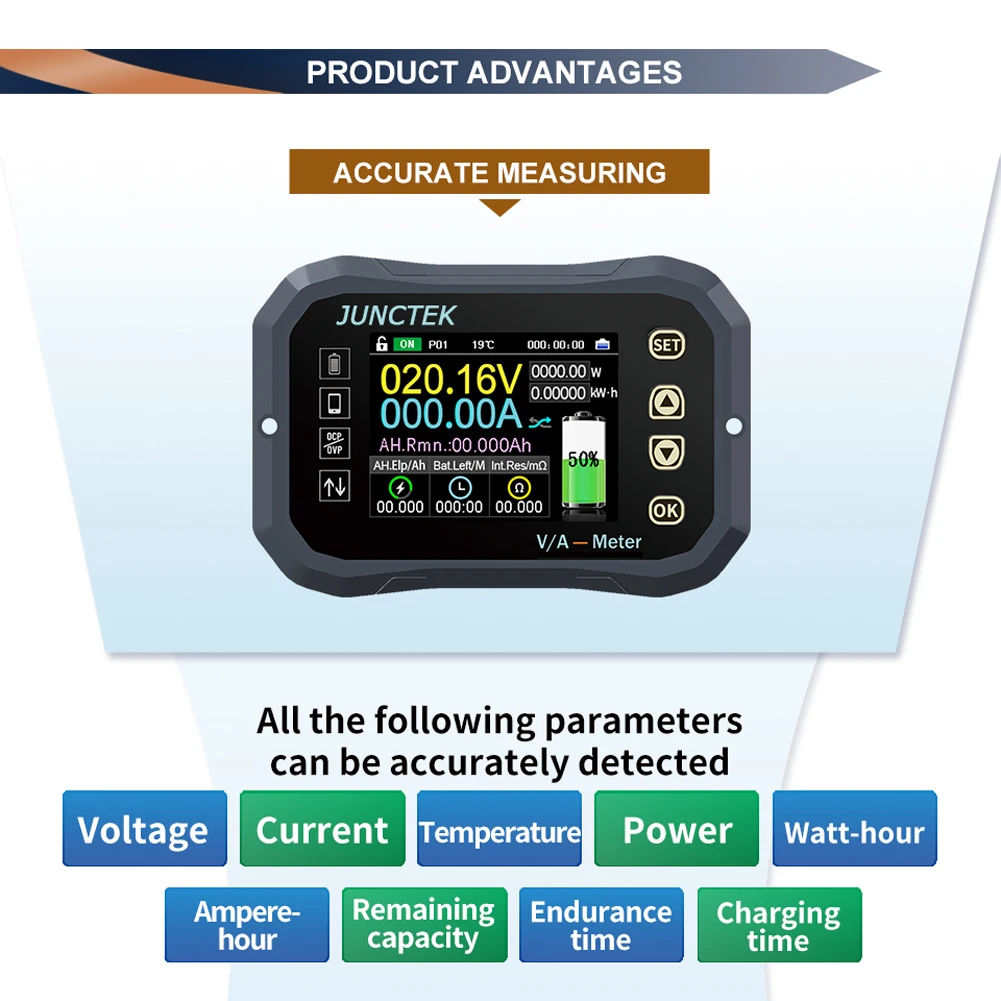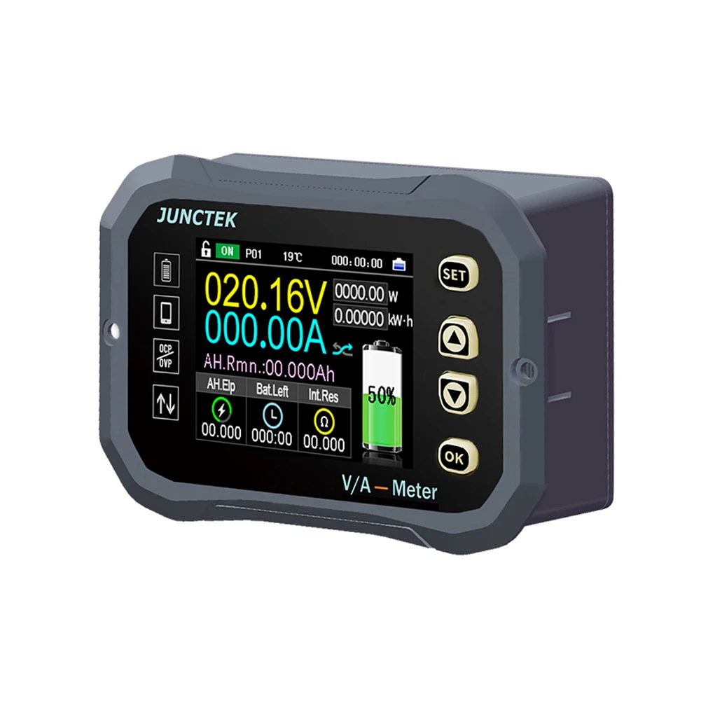 KG-F серия цветной экран беспроводной BT аккумулятор кулоном-это профессиональный инструмент для мониторинга заряда батареи, и он также может контролировать напряжение, ток, мощность, температуру окружающей среды, И энергии аккумулятора во время подзарядки и разрядки. Отображение времени полной зарядки аккумулятора в реальном времени и времени использования оставшегося заряда аккумулятора. Это идеальный помощник в вашей повседневной работе или использовании, приди и попробуйте, он не подведёт вас.Особенности:Принять 2,4 дюймовый цветной экран, больше и легче для вас, чтобы читать данные, дать вам лучший опыт использования.Автоматически определяет ток как в направлениях подзарядки, так и разрядки.Используя ток * рабочее время для вычисления емкости подзарядки и разрядки, что более точно, чем рассчитать оставшуюся емкость по напряжению.Мобильное приложение может подключаться к измерителю через беспроводной BT для просмотра данных и установки параметров и обновления прошивки измерительного модуля, также поддерживает кривую в режиме реального времени и графическую кривую отображения напряжения и тока, а также экспорт истории. (Только для Android)Шунт и винты изготовлены из чистой меди, а энергопотребление в режиме ожидания низкое.После настройки реле он может осуществлять защиту от перенапряжения, защиты от перенапряжения, защиты от перегрузки по току, защиты от перегрева и защиты от перенапряжения. (реле не входят в комплект)Параметры напряжения, тока и температуры могут быть калиброваны сами по себе.Дисплей и измерительный модуль подключаются через 3,0 метровую телефонную линию, и максимальная длина может быть увеличена до 30 метров, что более удобно для установки.0-120 В свинцово-кислотные батареи, литиевые батареи, железно-литиевые батареи и все другие батареи могут быть использованы.Технические характеристики:Материал: АБС-пластикМодель: KG110F/KG140F/KG160F (опционально)Диапазоны измерения напряжения (внешний источник питания): 0-120 вДиапазоны измерения напряжения (автономное питание): 10-120 вРазрешение напряжения: 0,01 вТекущий диапазон измерений:KG110F: 0 ~ 100AKG140F: 0 ~ 400AKG160F: 0 ~ 600AВ настоящее время разрешение:KG110F: 0.01AKG140F: 0.1AKG160F: 0.1AДиапазон измерения температуры: -20 ~ 120 ℃Ач диапазоны измерения: 0 ~ 9999.99AHТочность напряжения: ± 2% + 3 цифрыТочность тока: ± 5% + 10 цифрРасстояние связи BT: 10 мРазмер упаковки:KG110F: 140*140*100 мм/5,5*5,5 * 3.9inKG140F: 250*180*55 мм/9,8*7,1 * 2.2inKG160F: 250*180*55 мм/9,8*7,1 * 2.2inВес упаковки:KG110F: 400g / 0.9lbKG140F: 600g / 1.3lbKG160F: 850g / 1.9lbПримечание:Как установить приложение:Демонстрационное Видео установки и эксплуатации приложения для мобильных телефонов Android:Http:/68.168.132.244/KG-F_app_Android_EN.mp4Скачать приложениеGoogle ссылка для скачивания http:/Https://play.google.com/store/apps/details?id=com.juntek.vatСервер Ссылка для скачивания http:/Http:/68.168.132.244/app/KG.apkЭто программное обеспечение поддерживает только Android 5,0 и более передовые системы. Он будет применяться для размещения во время установки. Пожалуйста, соглашайтесь и включите услуги местоположения.Пожалуйста, проверьте вышеуказанную информацию перед размещением заказа, спасибо за понимание.Упаковочный лист:1 * Модуль дисплея (модель опционально)1*3P терминал1 * измерительным модулем1 * кабель связи (3,0 м)1 * пробоотборник1*3P соединительный кабель1 * Датчики температуры1*4P соединительный кабель