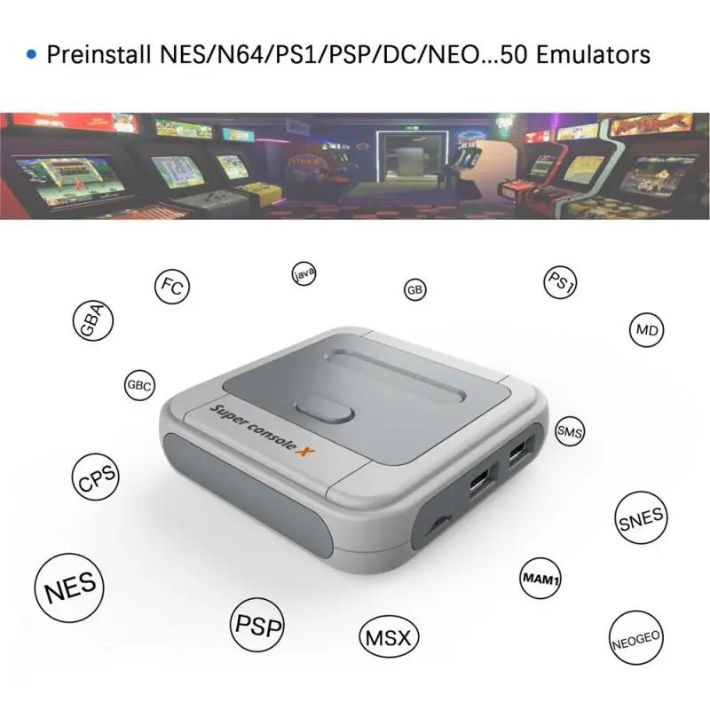 • 50000 + Ретро-игр, мощная игровая система, может запускать PSP, PS1, N64 и т. д. 50 + эмуляторы предварительно установлены.