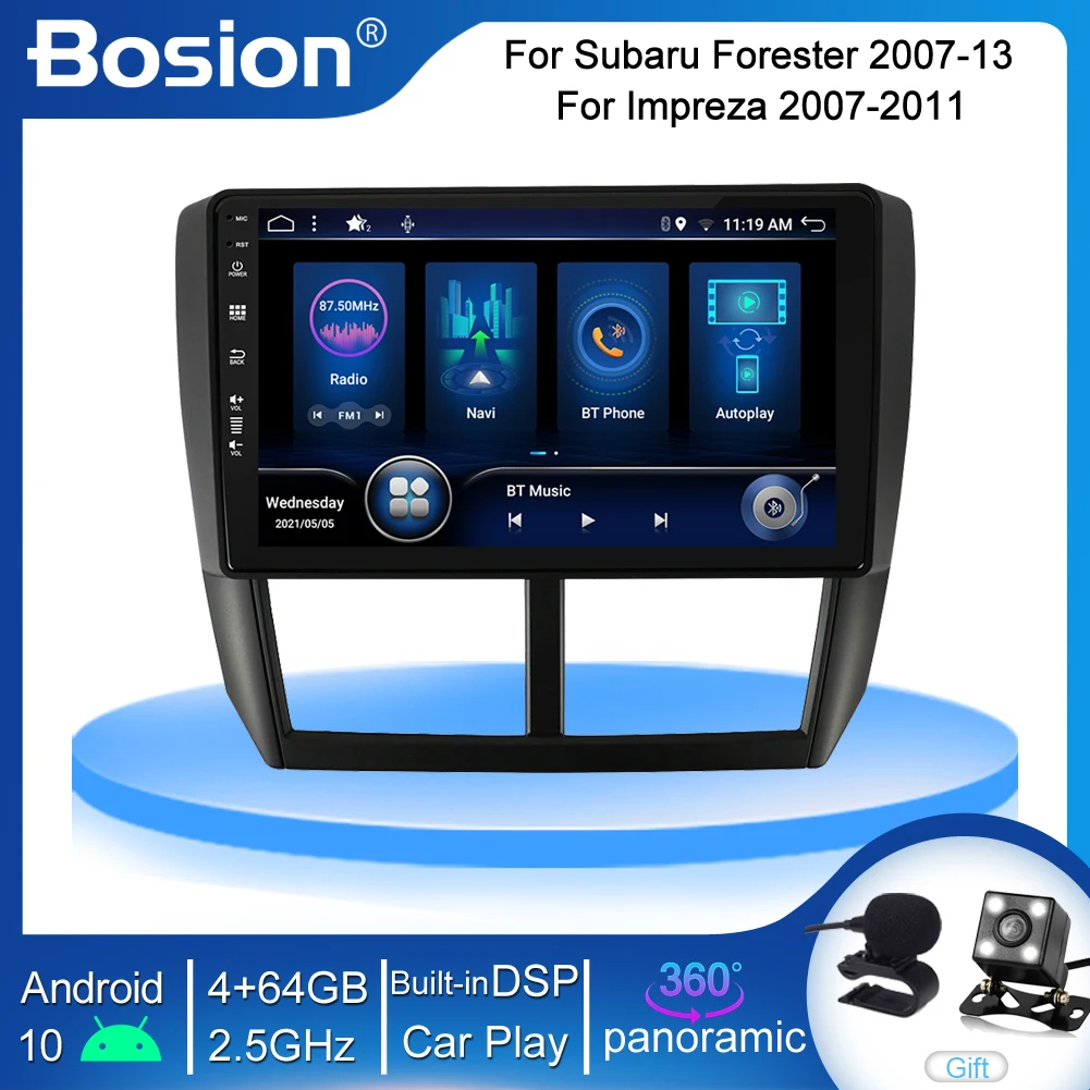 Автомагнитола Bosion 2DIN Android 10 для Subaru Forester 3 SH Impreza 2007-2013 Carplay 4 Гб + 64 ГБ, Автомобильный мультимедийный GPS Авторадио DSP