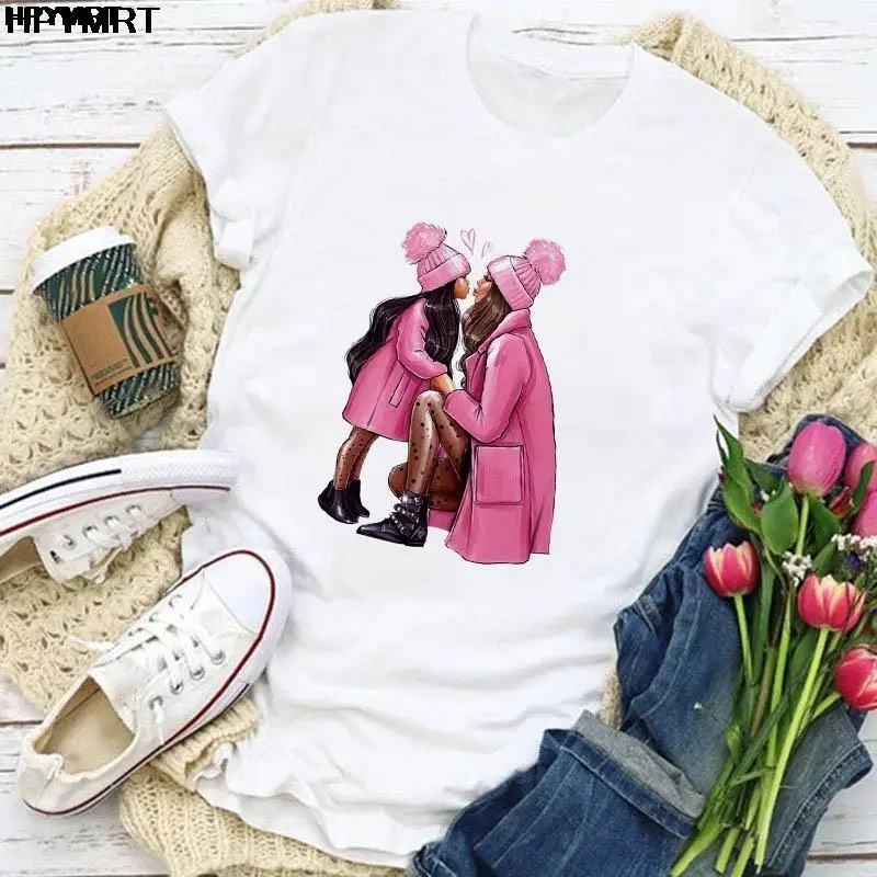 Женская футболка с рисунком из мультфильма для мамы и дочки; Женски...