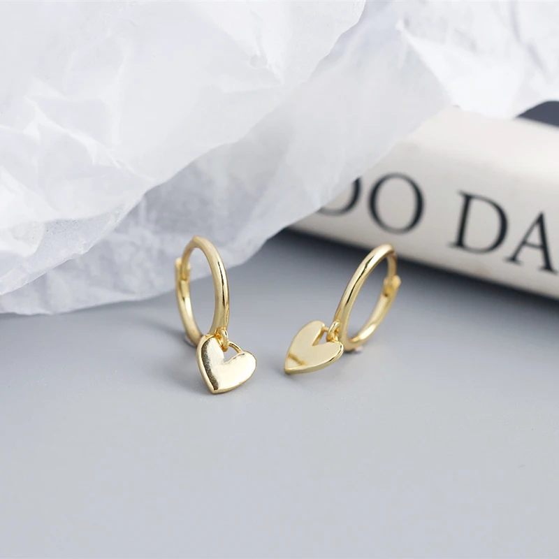 Серебряные, золотые, минималистичные серьги в виде сердечек для жен...