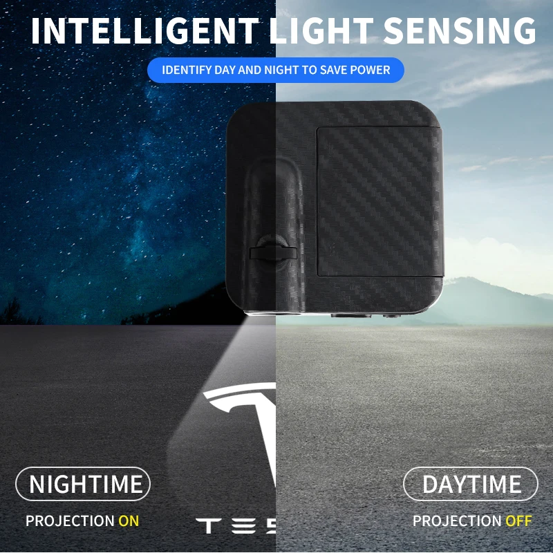 2. Умный светильник. Ослепляющий светильник с логотипом и сигнальный светильник будут отображаться на земле, когда вы откроете дверь автомобиля, и он выключится, когда вы закроете дверь.