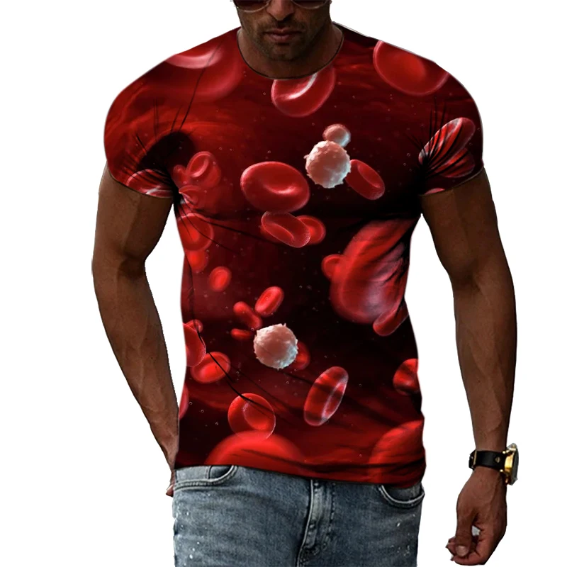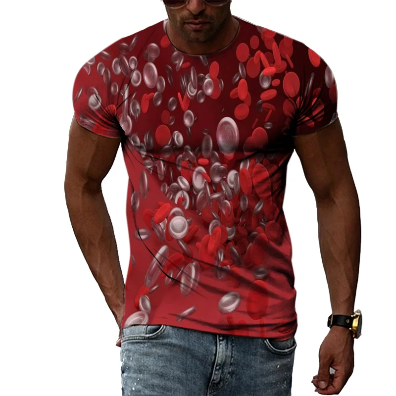 Футболка мужская с 3D принтом крови, креативная забавная уличная одежда в стиле хип-хоп, топ оверсайз с коротким рукавом и круглым вырезом, лето 2021