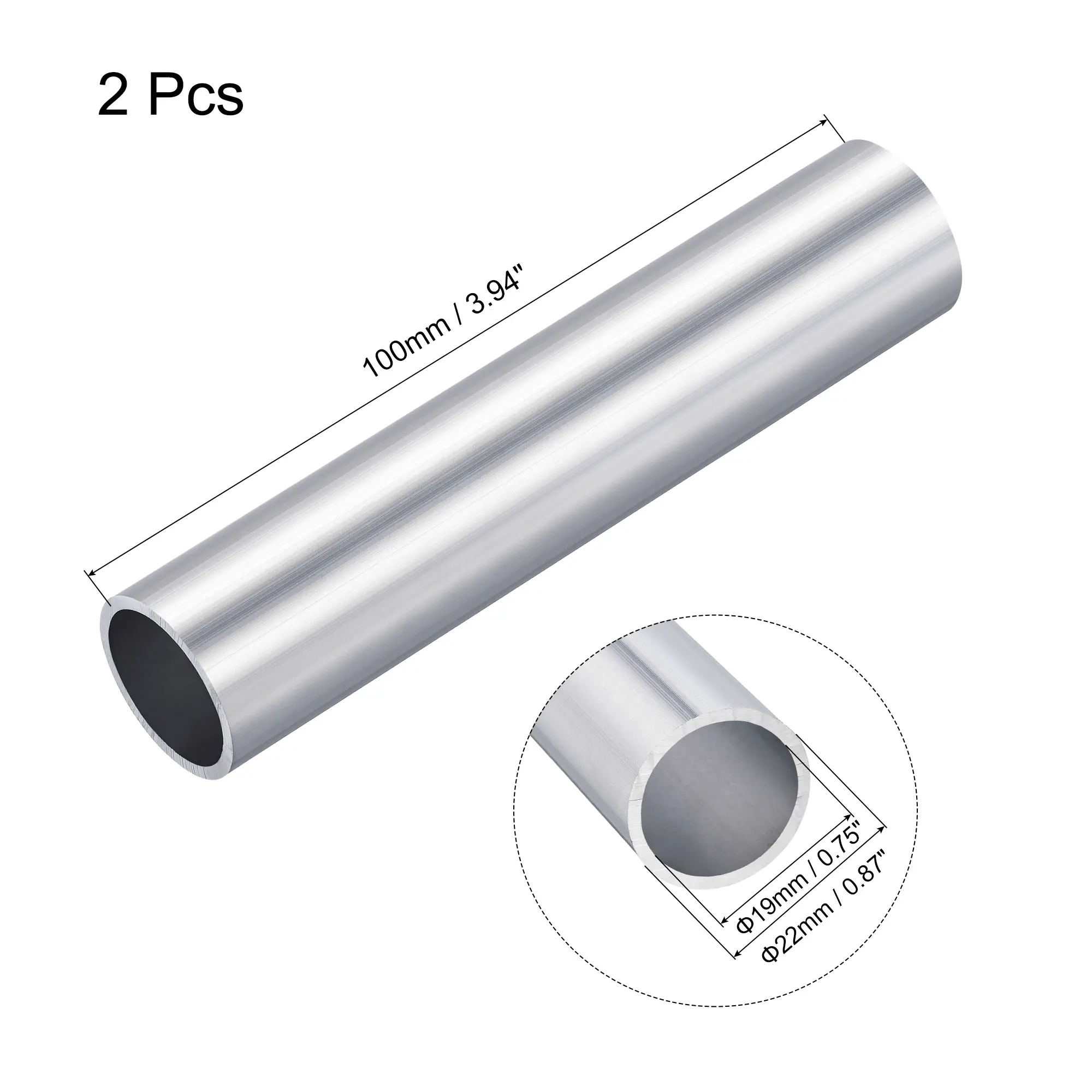 Uxcell 6063 алюминиевая круглая труба 22 мм OD 19 мм внутренний диаметр 100 мм Длина трубы трубки 2 шт