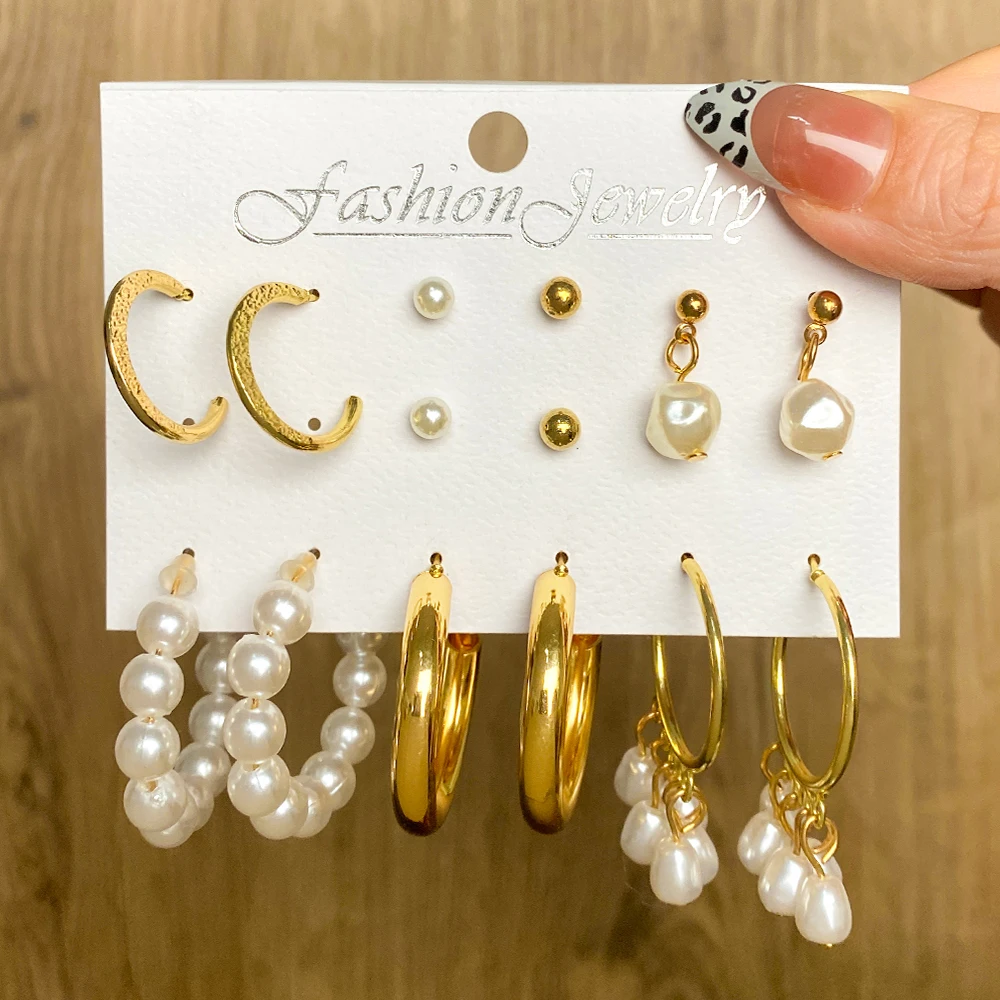 EN винтажные новые модные жемчужные обручи Комплект сережек для жен...