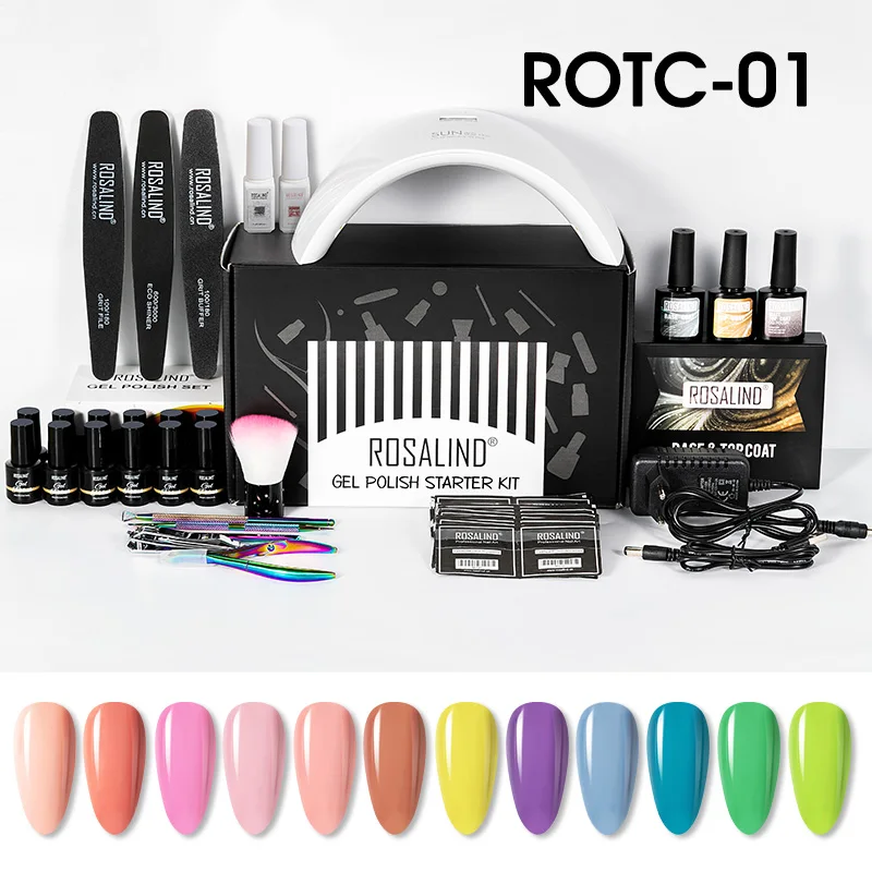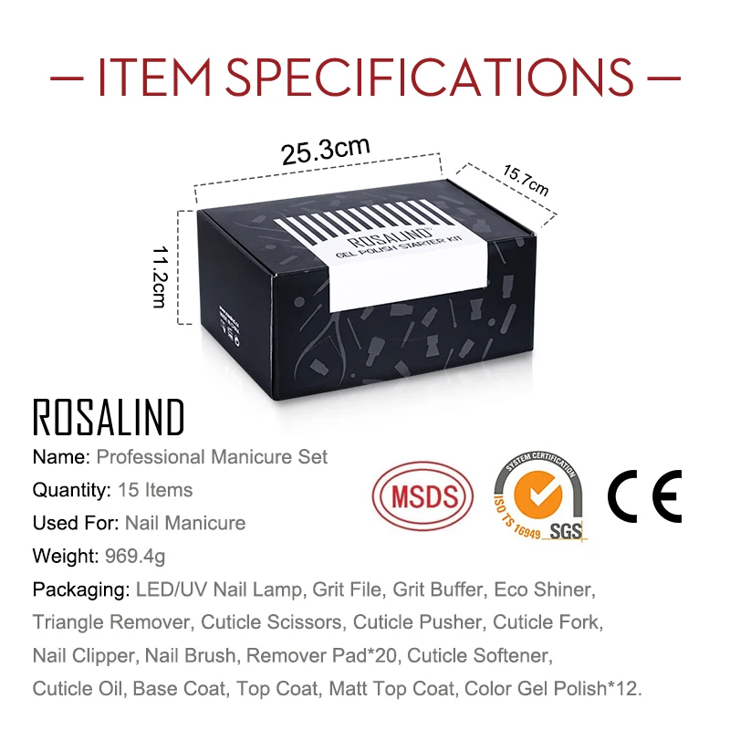 Набор для маникюра ROSALIND, набор гель-лаков для ногтей с УФ-светодиодный сушилкой, хорошая упаковка, Полупостоянный Набор для маникюра, профессиональный набор инструментов