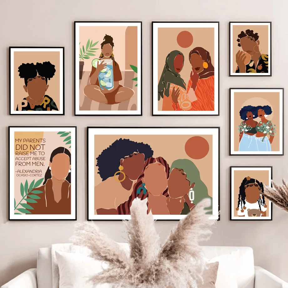 Настенные картины в скандинавском стиле с изображением девушек и же...