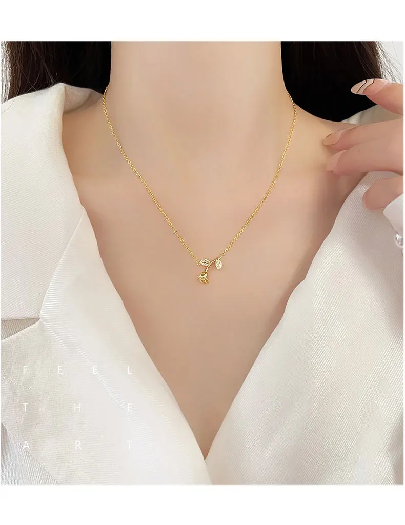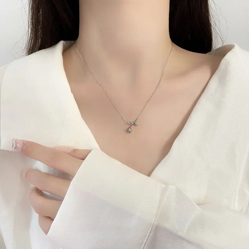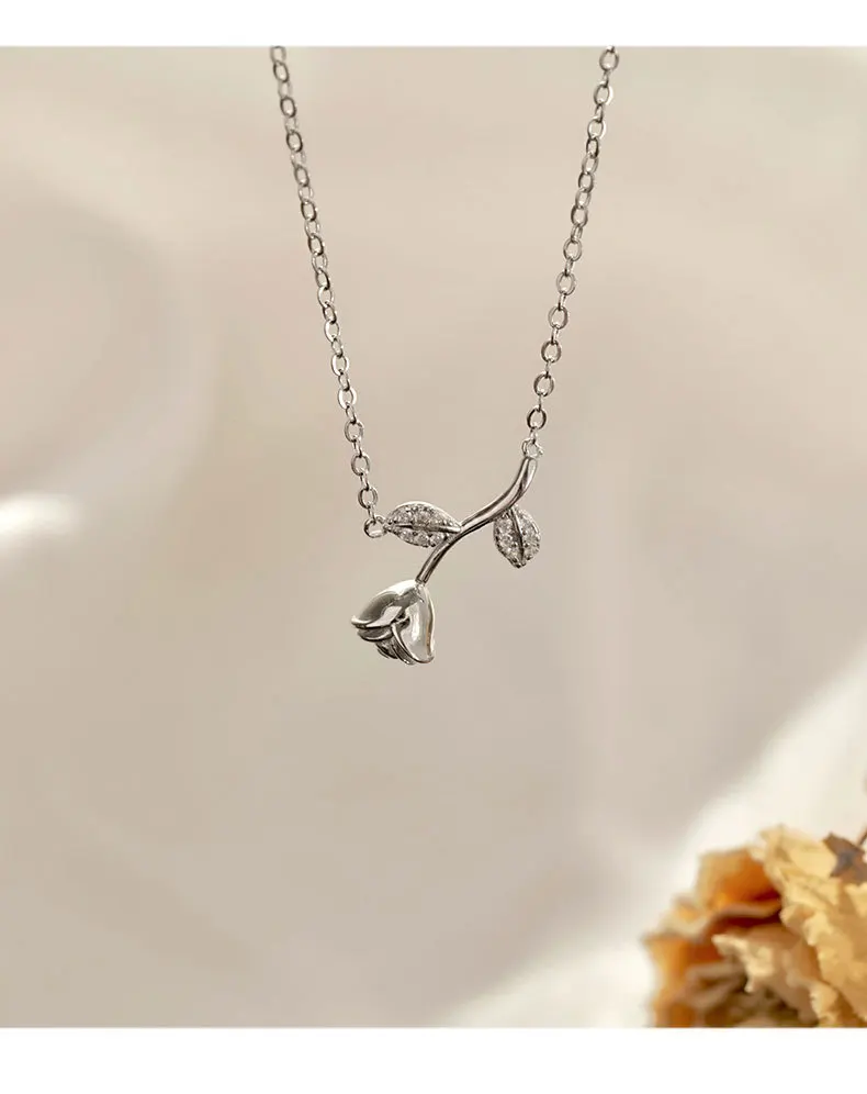 MLKENLY женское ожерелье из искусственной серебристой розы, женская простая циркониевая микро-инкрустированная нежная дизайнерская цепочка до ключиц для женщин