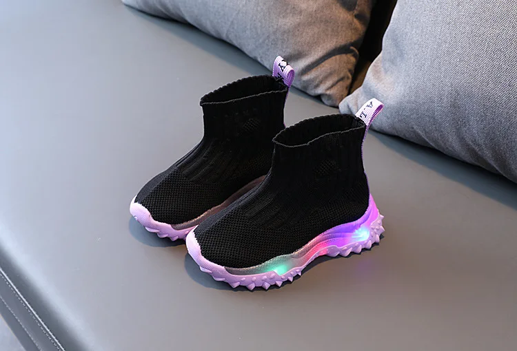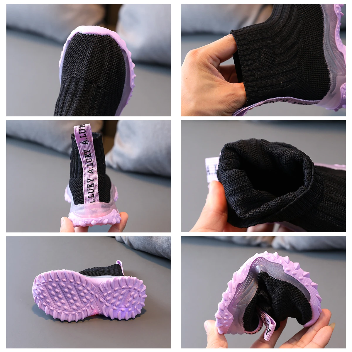 Кроссовки-носки детские сетчатые со светодиодной подсветкой, размер...