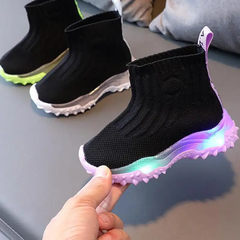 Детские сетчатые кроссовки, дышащие светящиеся носки со светодиодно...