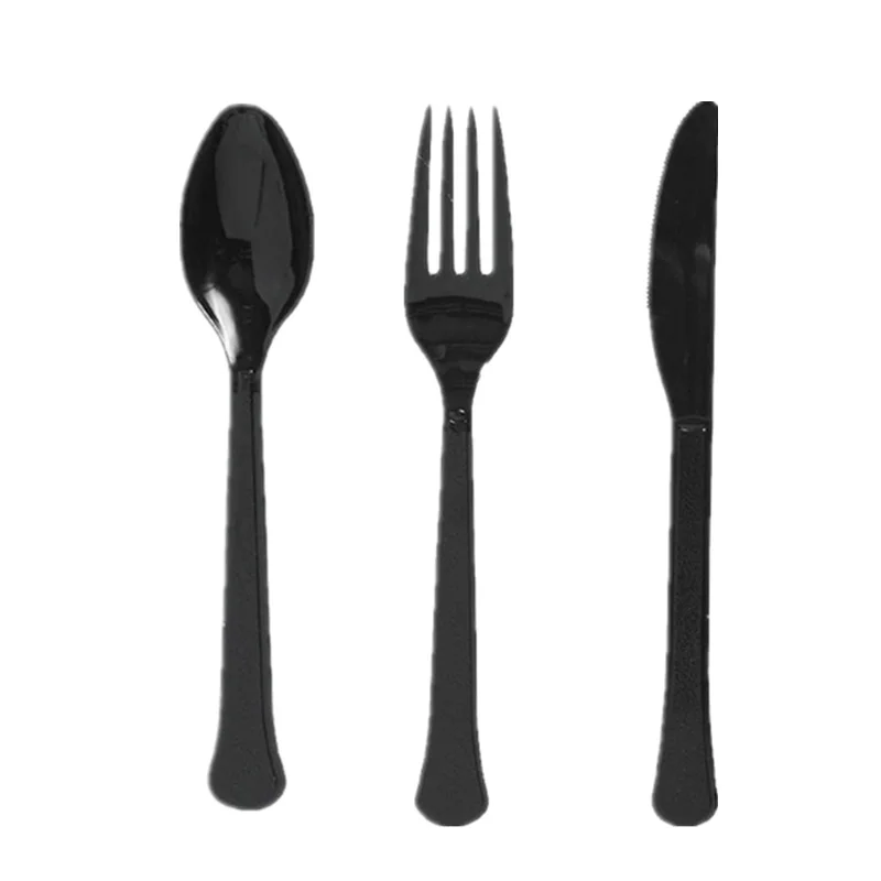 Пластиковые ножи вилки набор ложек Свадьба Вечеринка желтый синий розовый черный фиолетовый зеленый одноразовая посуда для дня рождения Декор