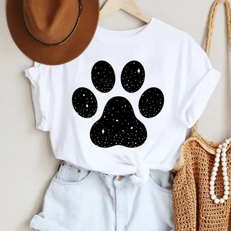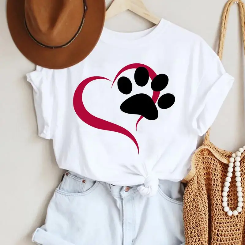 Женская футболка с принтом Собачья лапа и надписью леопард