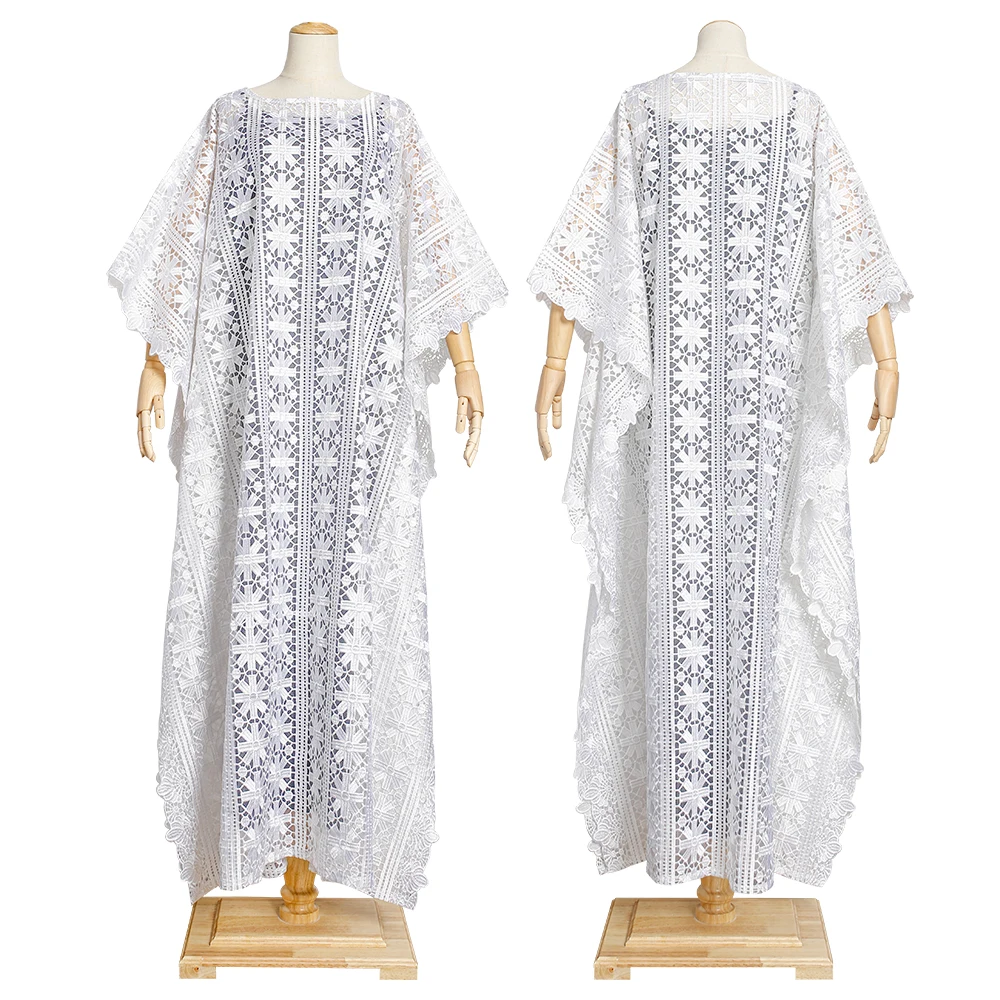 Белое Кружевное Африканское платье для женщин 2022, африканская одежда Дашики, вечернее платье, женское платье, мусульманское платье макси-кафтан