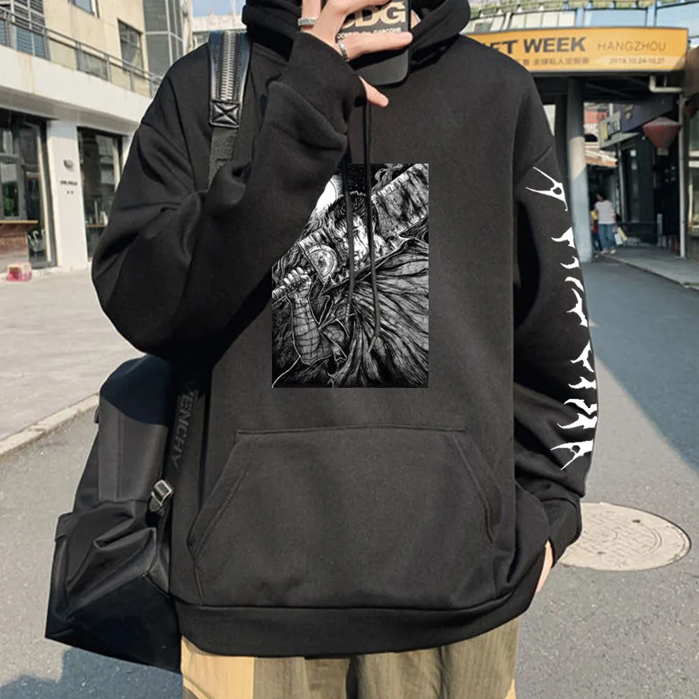 Толстовка мужская с капюшоном манга, свитшот с графическим принтом, повседневный Свободный теплый флисовый пуловер в стиле унисекс, уличная одежда в стиле Харадзюку