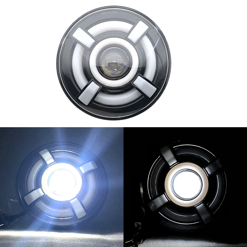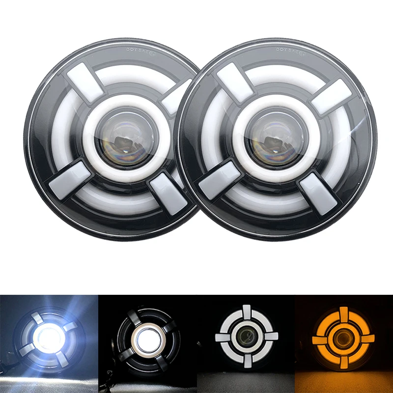 Круглсветодиодный светодиодные фары 5,75 дюйма, 2 шт., с белыми дневными ходовыми огнями, ангельские глазки для трехскоростного и уличного проектора Triple Thunderbird 5 34 дюйма