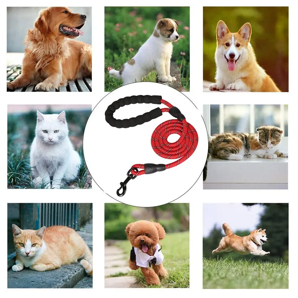 Светоотражающий прочный поводок для собак, длиной 1,5 м, с удобной мягкой ручкой