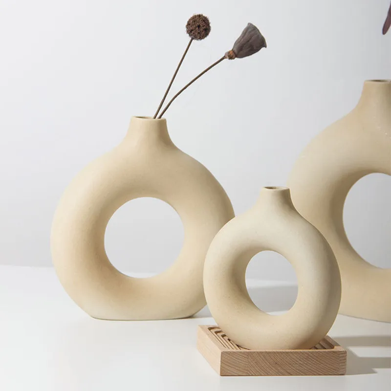 Белая керамическая ваза в минималистском стиле, скандинавские круглые декоративные керамические вазы с отверстием и мелким ртом, украшения для дома и офиса