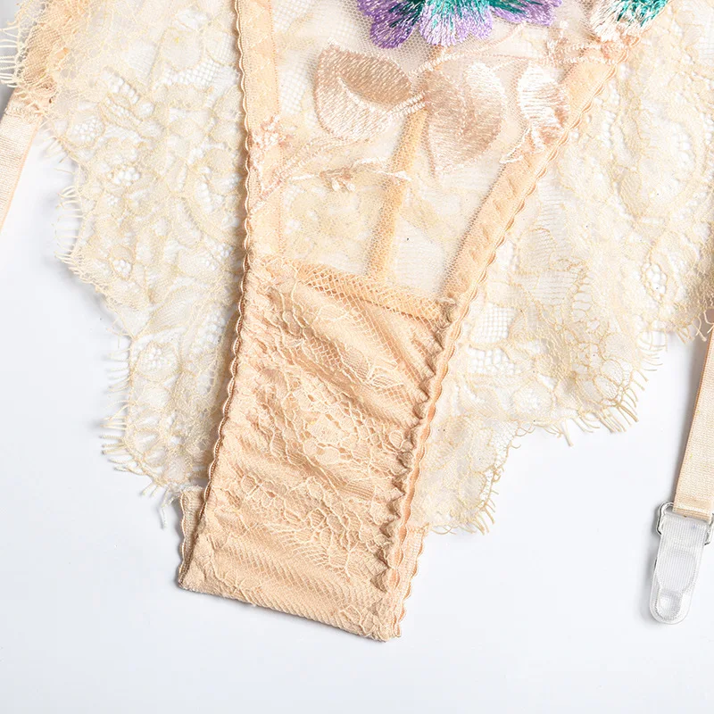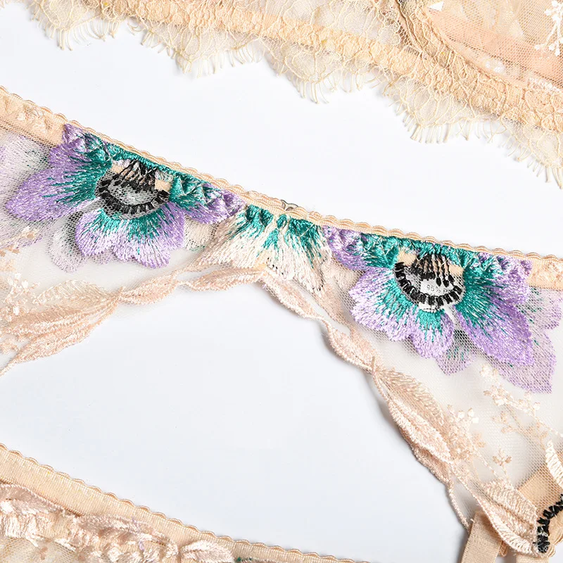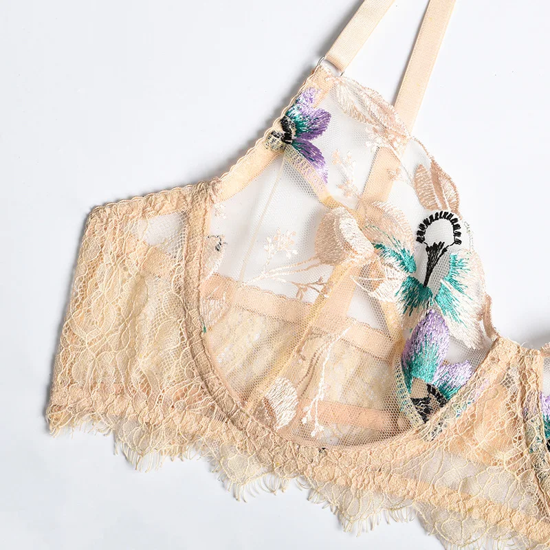 Соблазнительное Эротическое нижнее белье, кружевное прозрачное Сетчатое женское нижнее белье с вышивкой бабочки, три комплекта