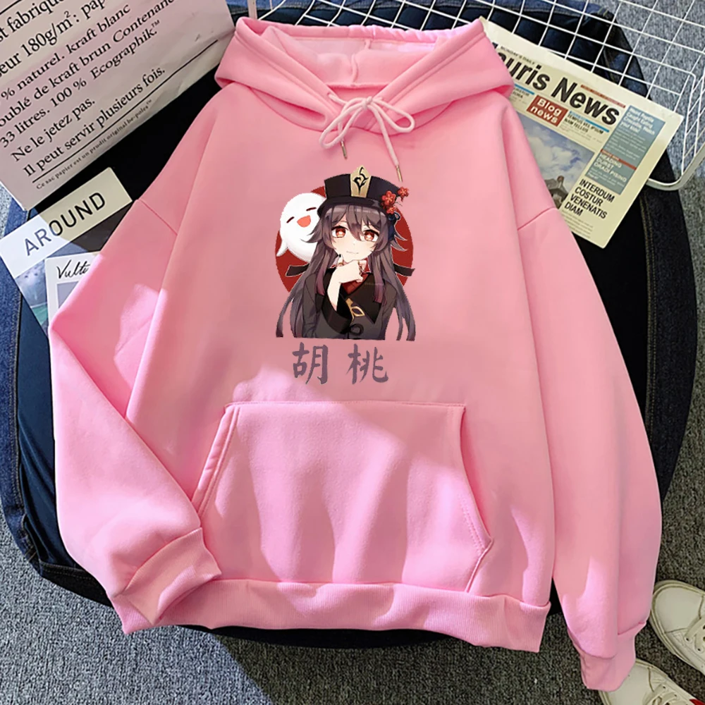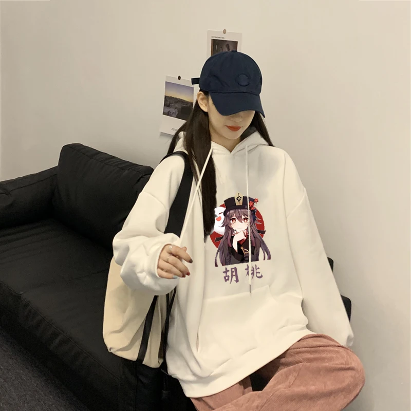 Kawaii Аниме Толстовка свободного покроя Hu Tao Карманный Genshin ударный принт Harajuku Повседневная Уличная толстовка женская и мужская одежда