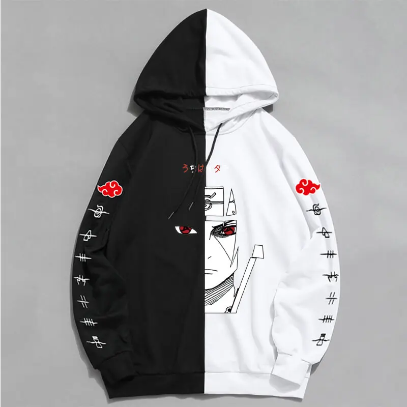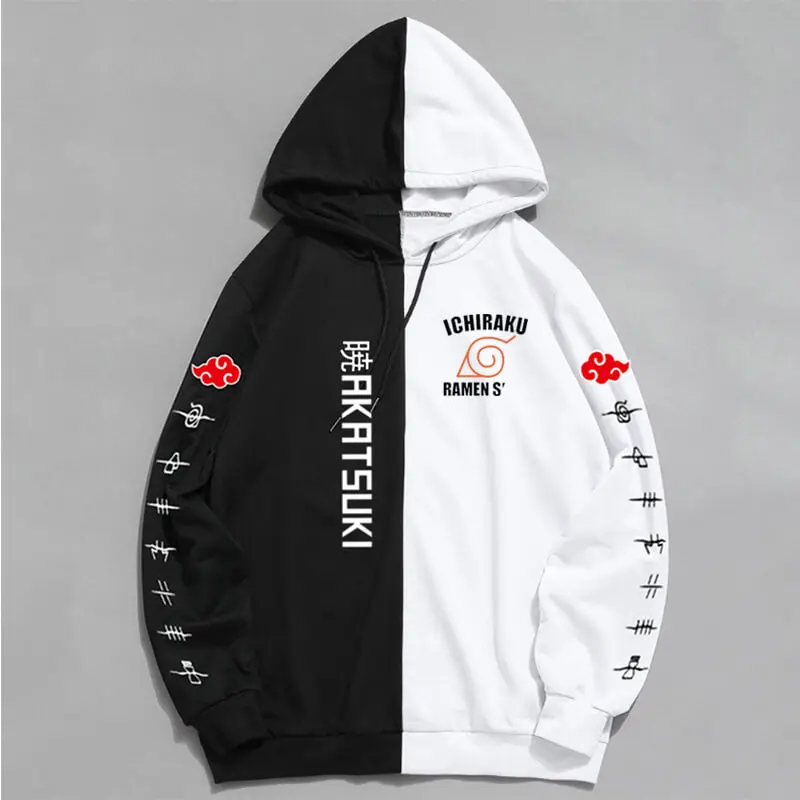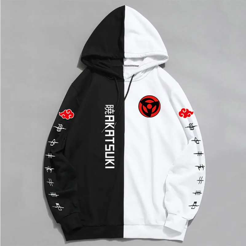 Новинка 2021, распродажа, Двухцветная Толстовка с капюшоном, Модный пуловер с принтом Акацуки, свитшот, большие размеры, аниме, мужские и женские толстовки