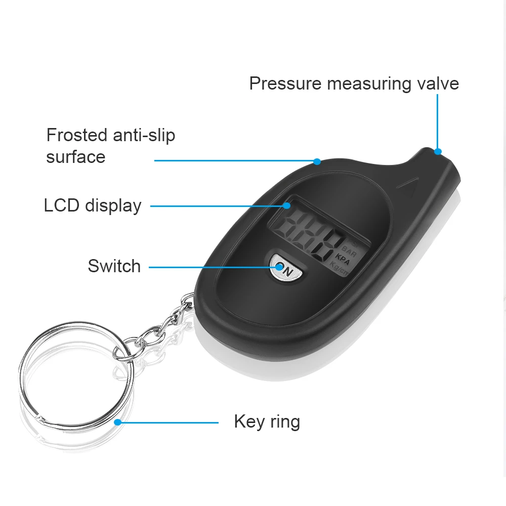 100% новый и высокое качество.Повышение топливной эффективности, экологичность и экономия газа.Дизайн брелка, легко носить с собой.Уменьшить износ шин и продлить срок службы шин.Необходимый товар для ежемесячной проверки шин.Прекратите чрезмерный износ шин при надлежащем надувании.Улучшает работу транспортного средства и безопасность.Большой ЖК-дисплей для удобного чтения.Идеально подходит для путешественников и водителей.Обтекаемый внешний вид более изысканный.