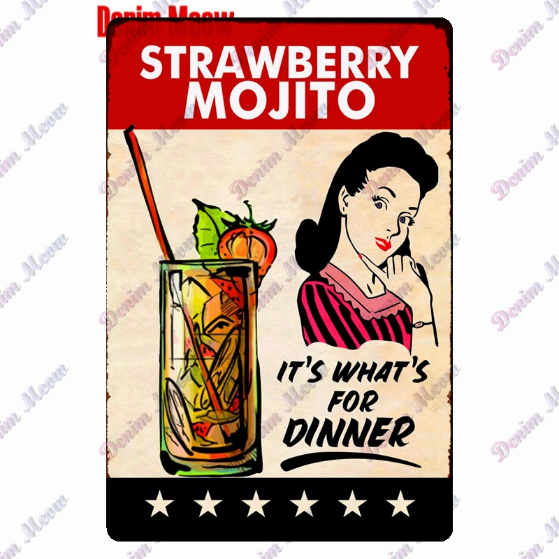 Винтажная настенная тарелка с ромом и пивом Mojito для кухни в стиле ретро, для виски, текила, для ужина, жестяная вывеска, для клуба, паба, кафе, домашний декор, WY188