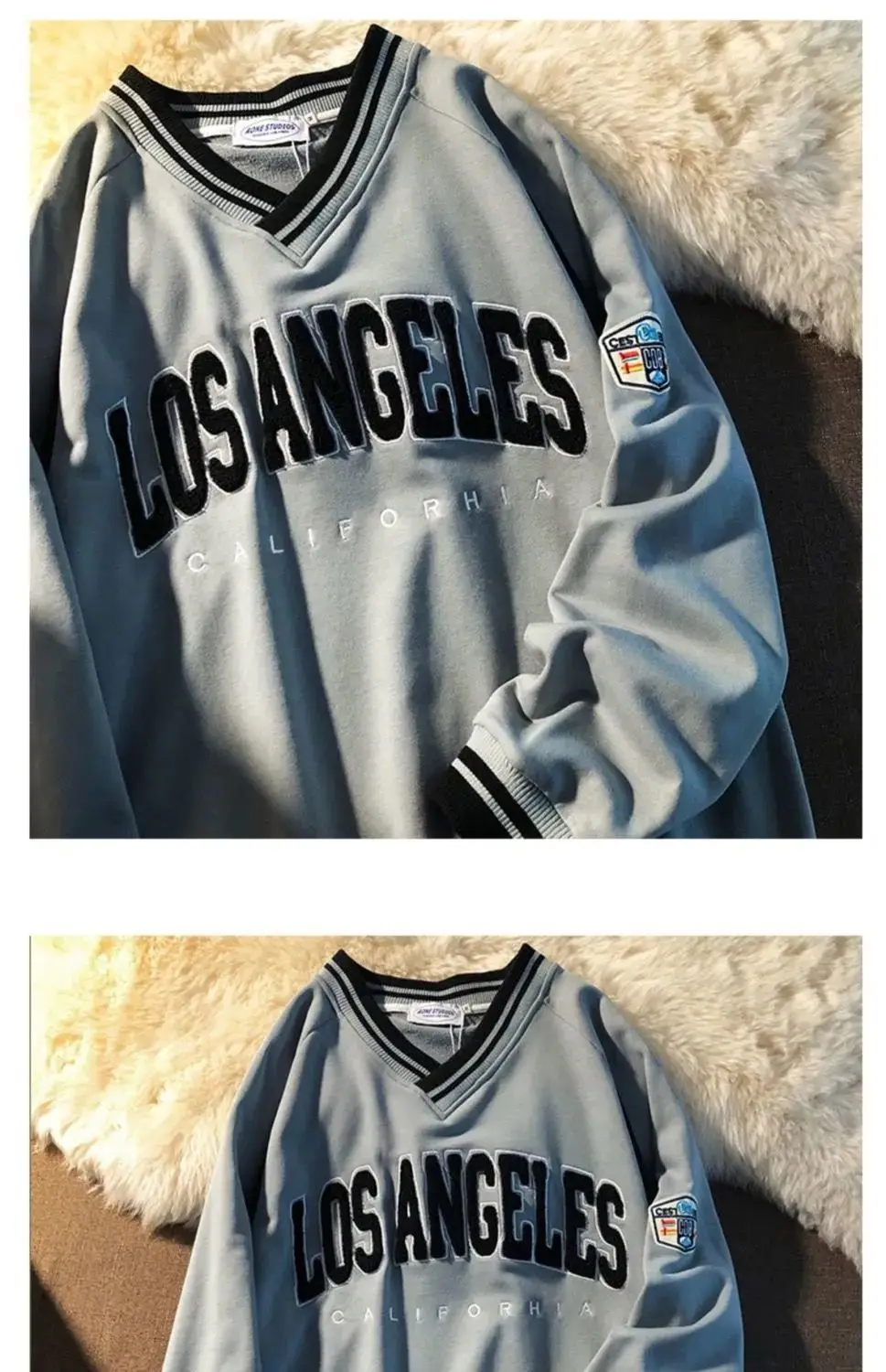 Женский свитшот с вышивкой M.Y.FANTASY 2021, Осенний свитшот большого размера с буквенным принтом, пуловер с V-образным вырезом и длинным рукавом в стиле Харадзюку