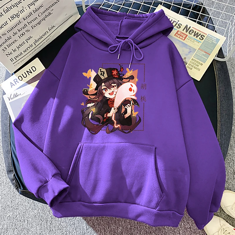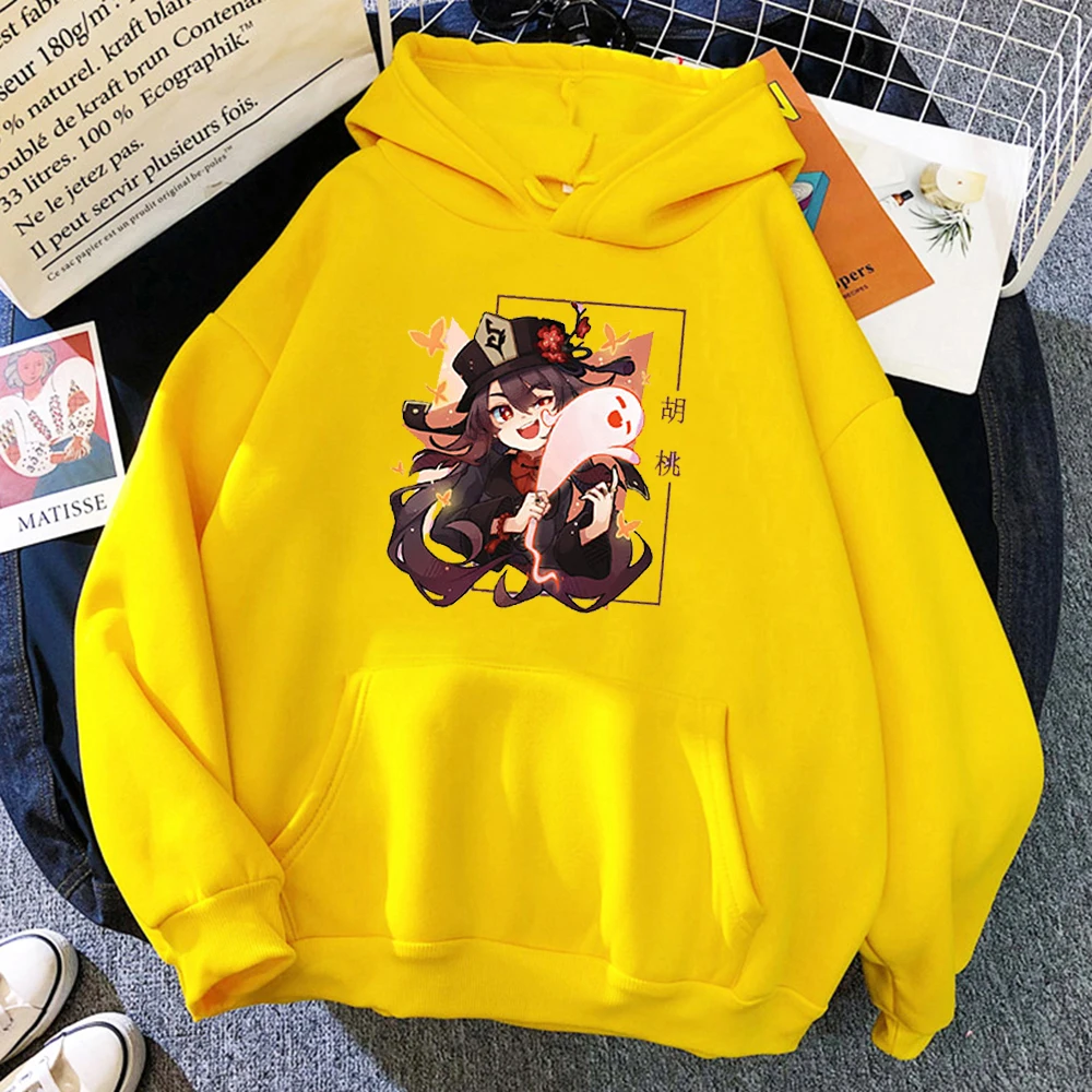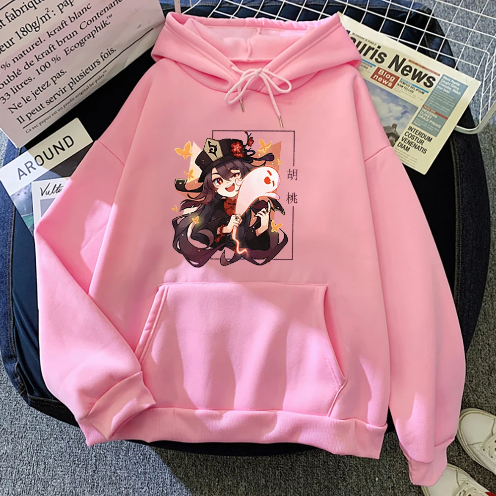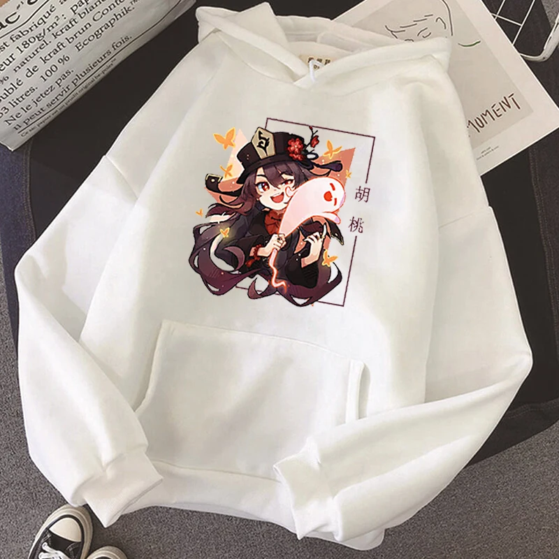Кавайная толстовка с капюшоном в стиле Харадзюку, свободная одежда с карманом Ху Тао, принтом Genshin Impact, Повседневная Уличная одежда, женские и мужские свитшоты