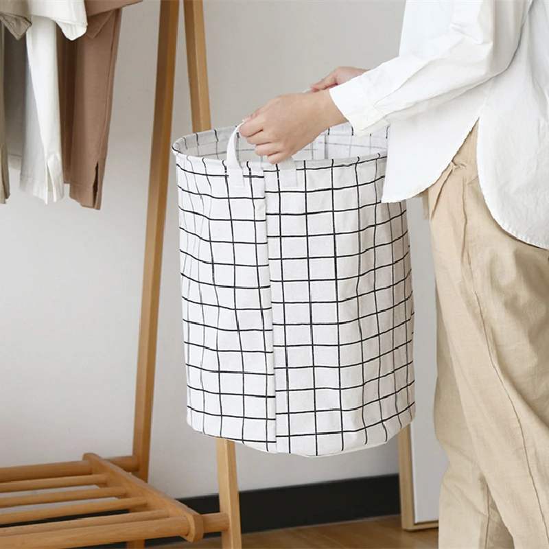 Корзина для грязного белья из хлопка и льна, складная круглая Водонепроницаемая Женская одежда, большая емкость для хранения детских игрушек для дома
