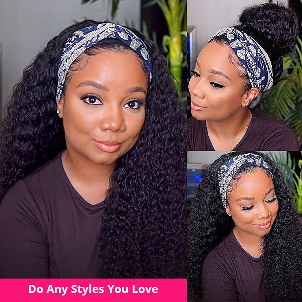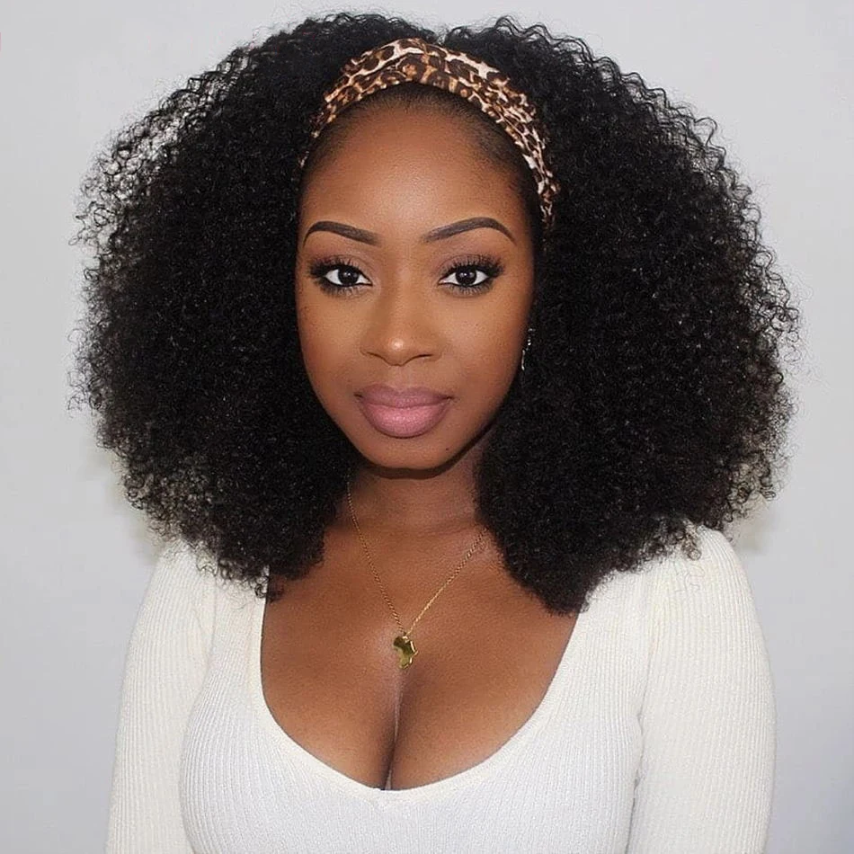 Full Machine WigHeadband Wig Human Hair Afro Kinky Curly