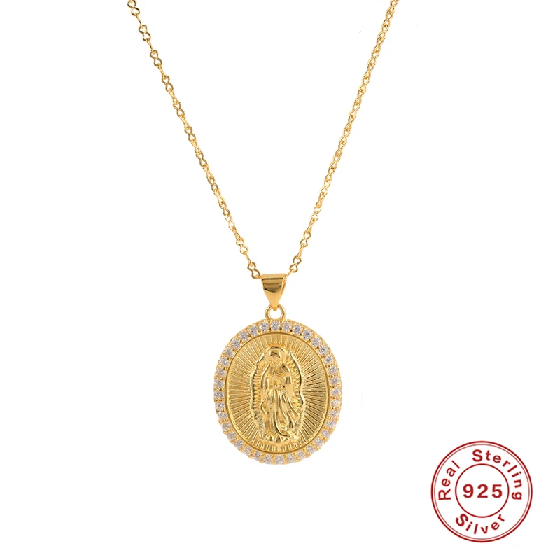 Женское ожерелье с подвеской Дева Мария, серебро 925 пробы