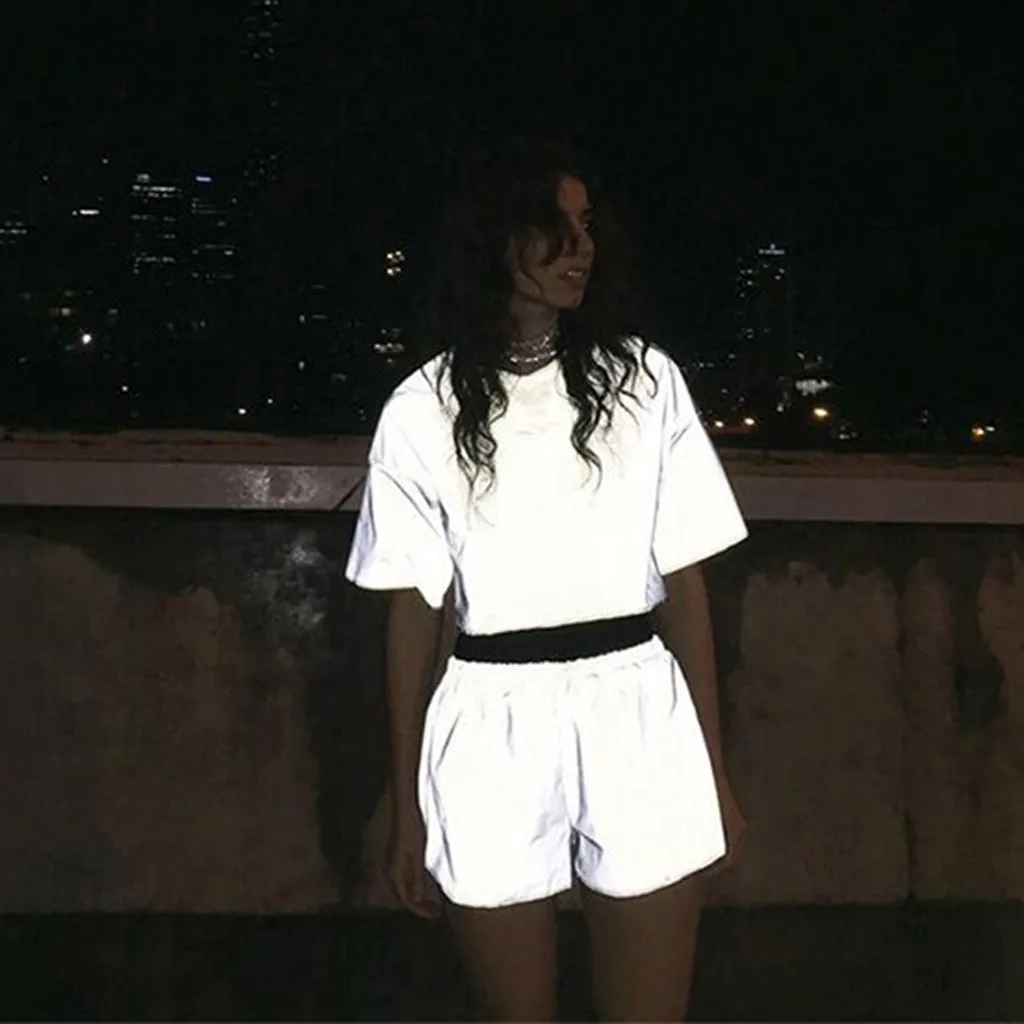 Женская футболка со светоотражающими элементами, светящиеся наряды для танцев, концертов и вечеринок, женская одежда, топ, уличная одежда 2021