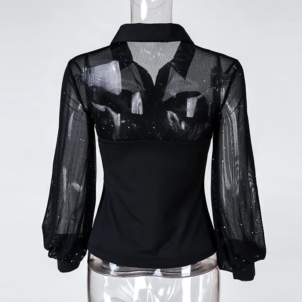 Женская сетчатая блузка с круглым вырезом и длинным рукавом