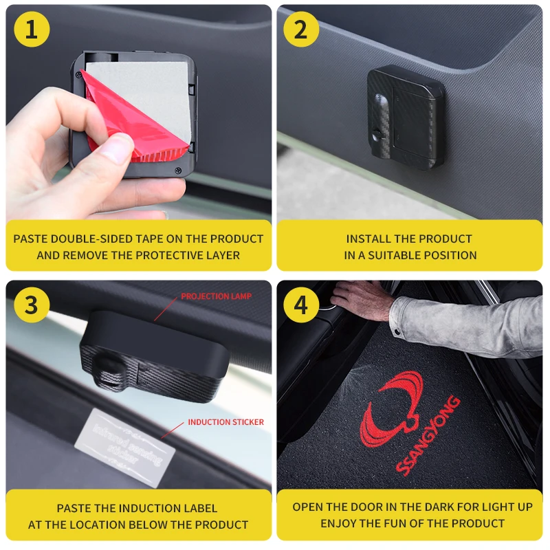 4. Прикрепите светодиодный дверной светильник к двери над порогом автомобильной двери