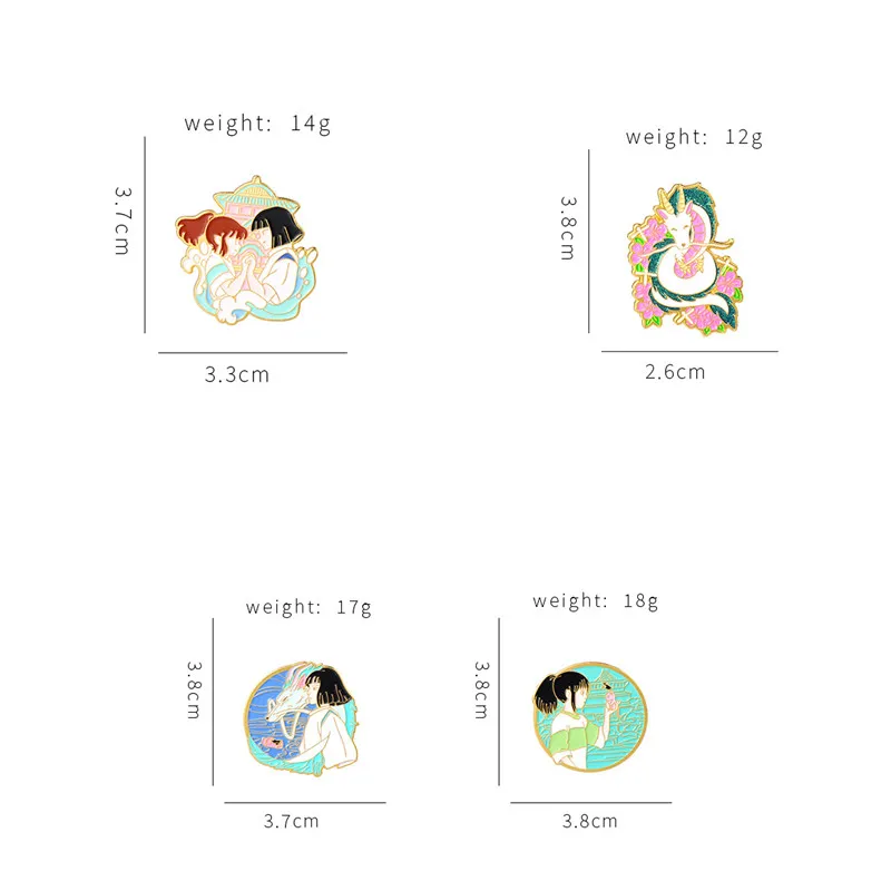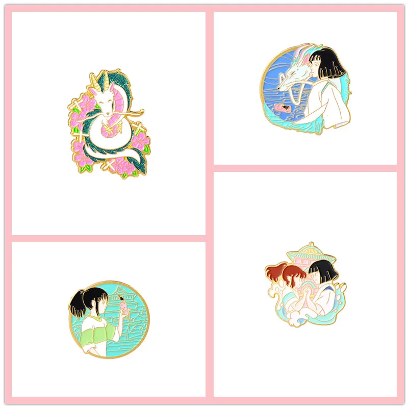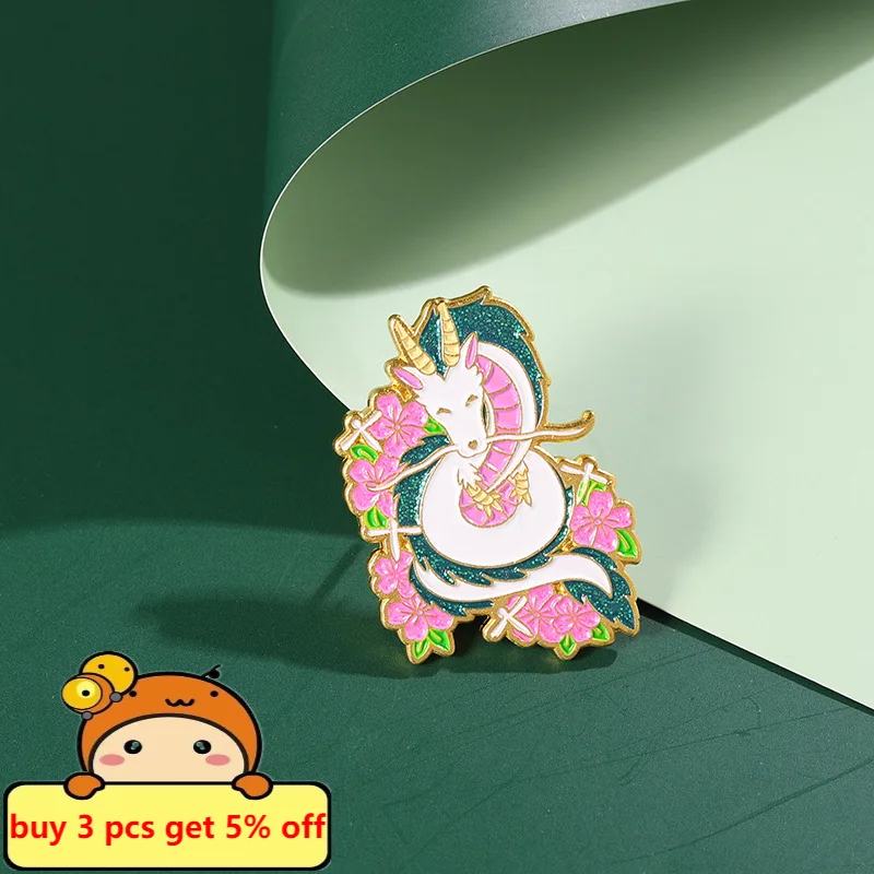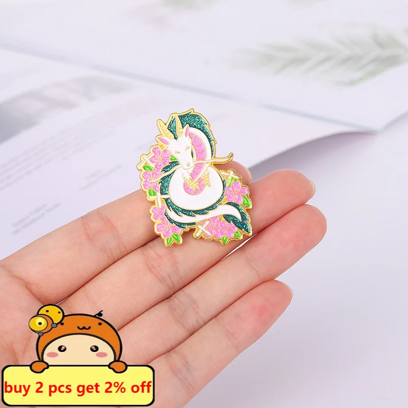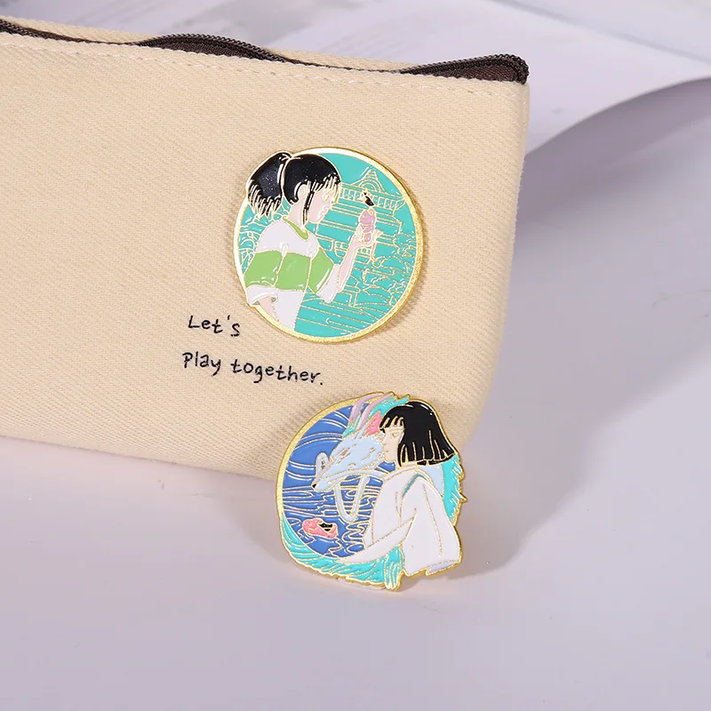 Эмалированная брошь с изображением героев мультфильма Дракон и девушка