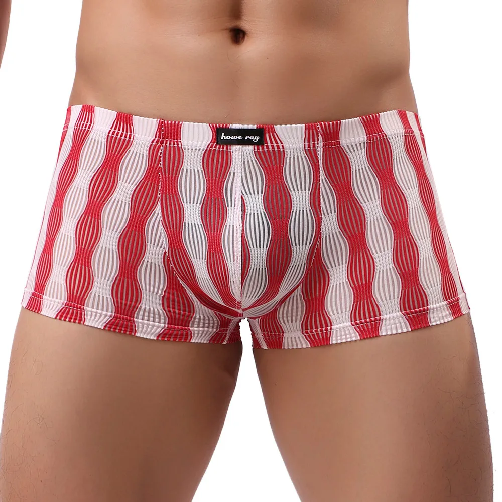 Трусы-боксеры мужские в полоску, пикантное нижнее белье, дышащие шорты, мягкие удобные трусы