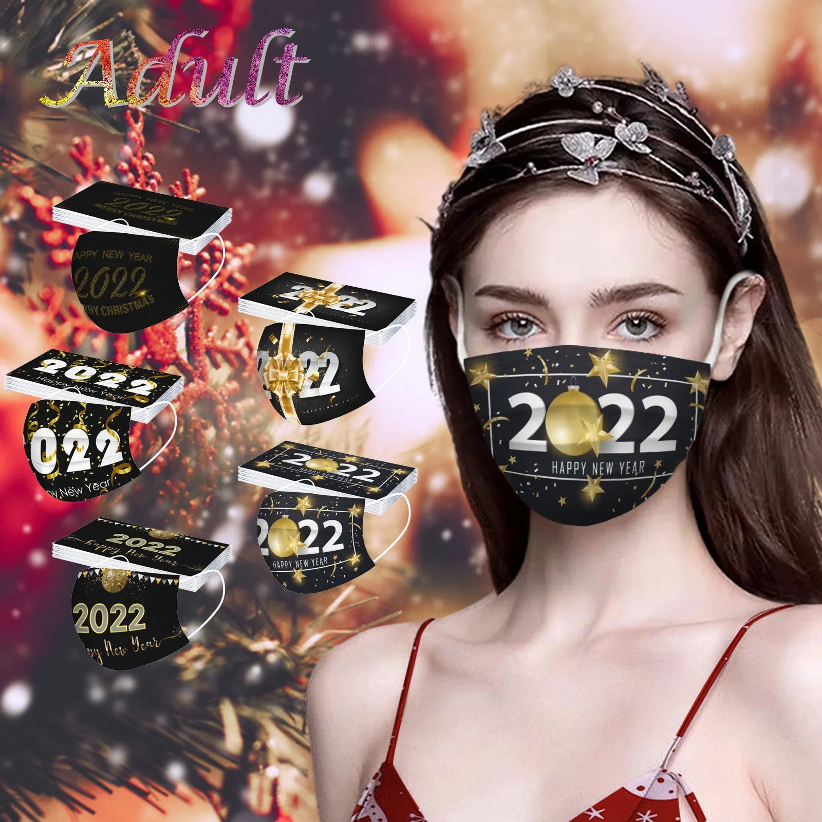 10 шт., одноразовые маски для лица для взрослых с новым годом 2022