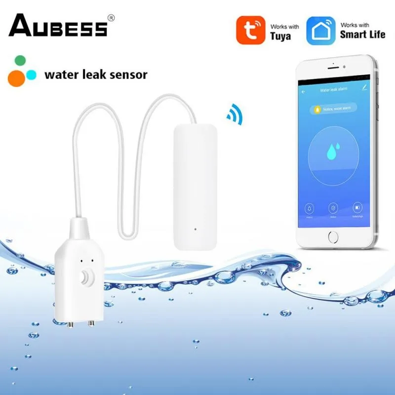 Умный датчик утечки воды Aubess WiFi Tuya, совместим с приложением Tuyasmartsmart Life, простая установка