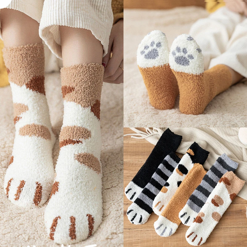 Зимние женские носки с кошачьими когтями зимние толстые и теплые но...