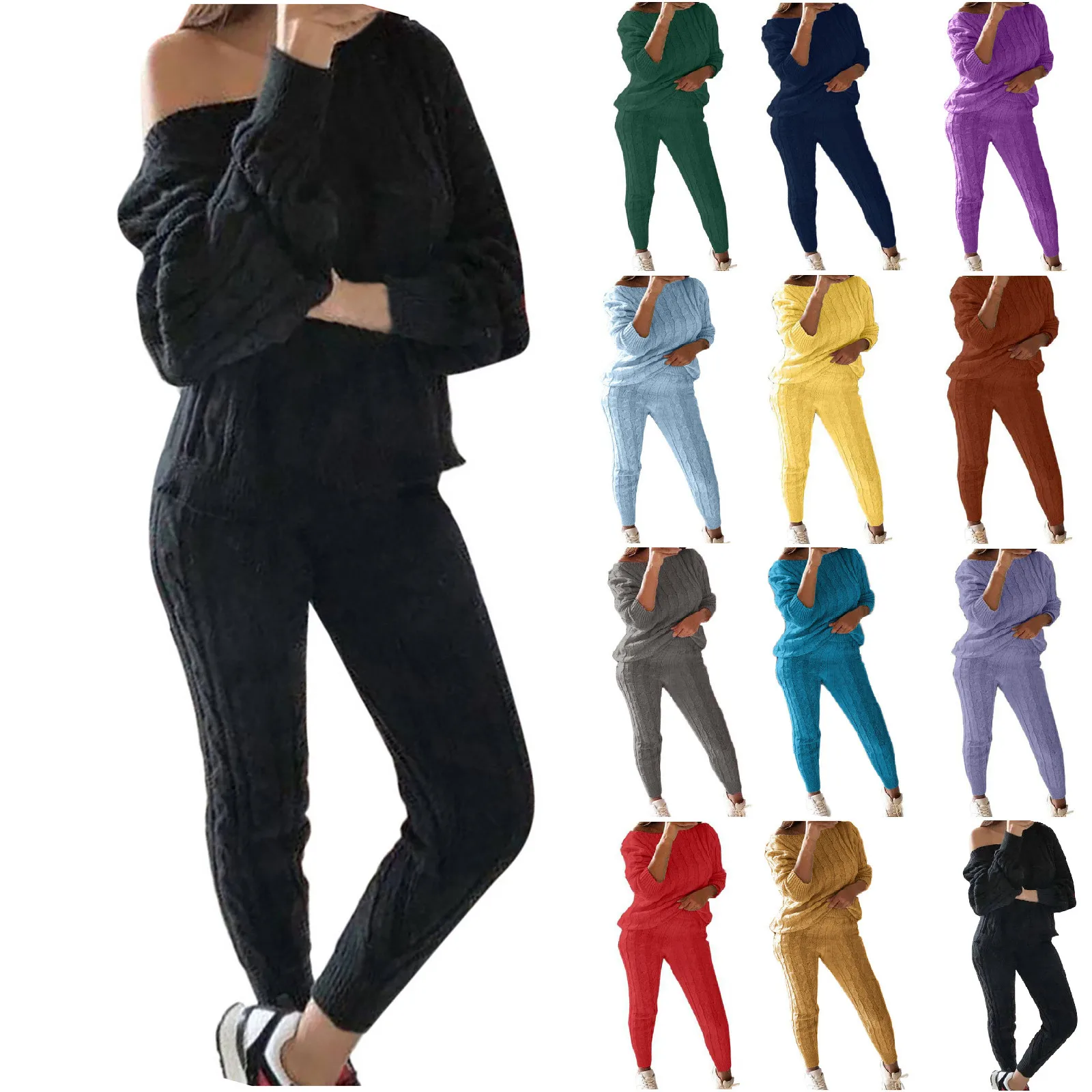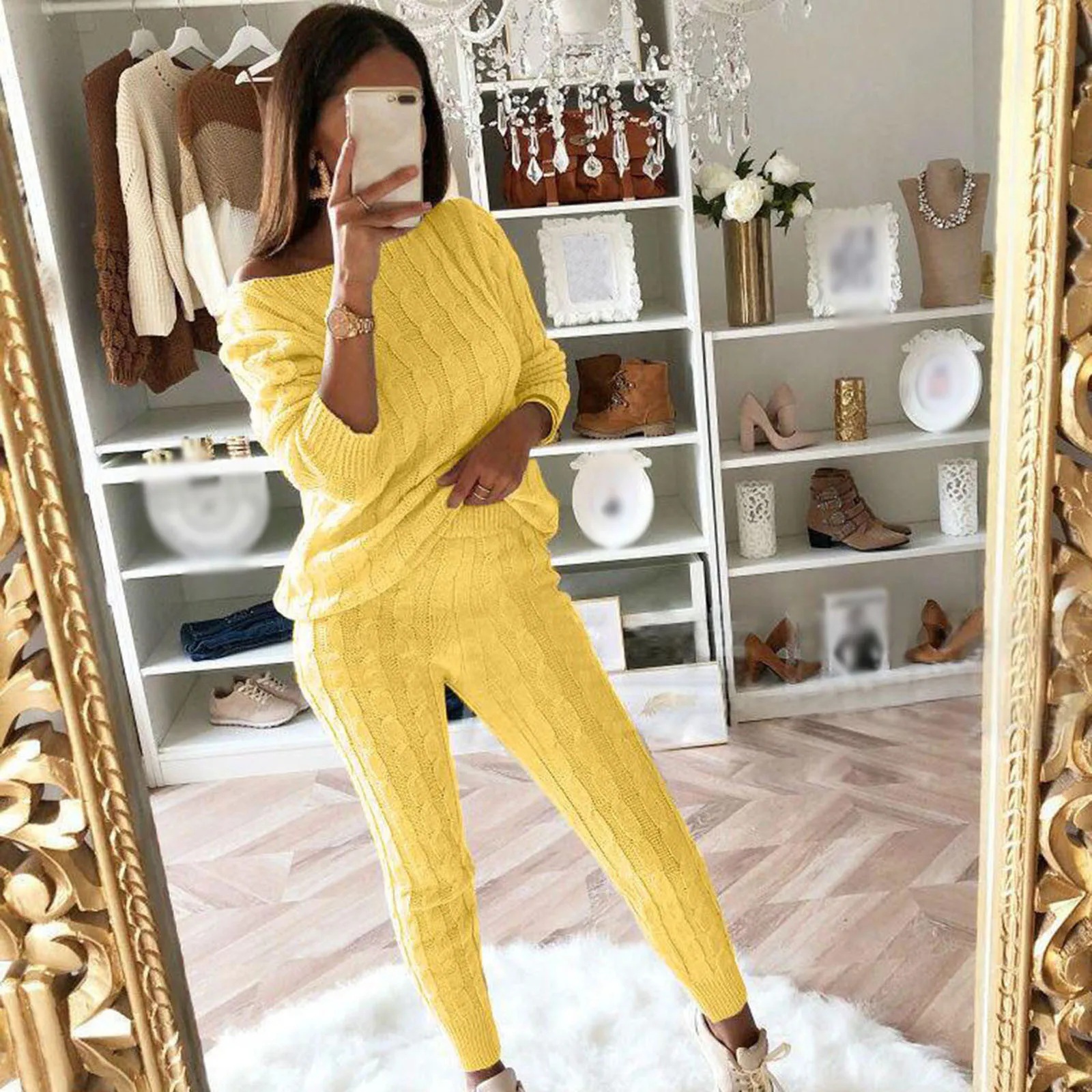 Женский трикотажный Костюм-двойка, однотонный вязаный теплый свитер без бретелек с длинными рукавами