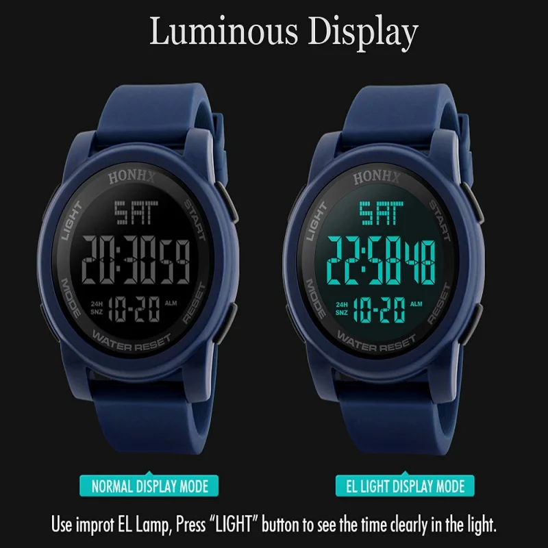 Электронные часы со светодиодным дисплеем, уличные спортивные ручные часы, водонепроницаемые дизайнерские светящиеся часы с функцией даты и силиконовым ремешком