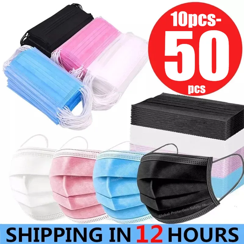 Одноразовая черная маска для лица, 3-слойная защитная дышащая маска с фильтром из мелтблауна