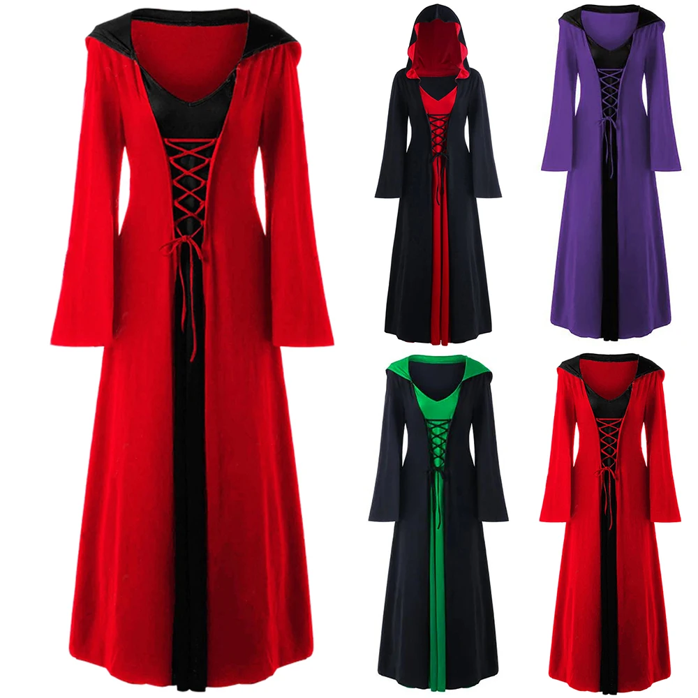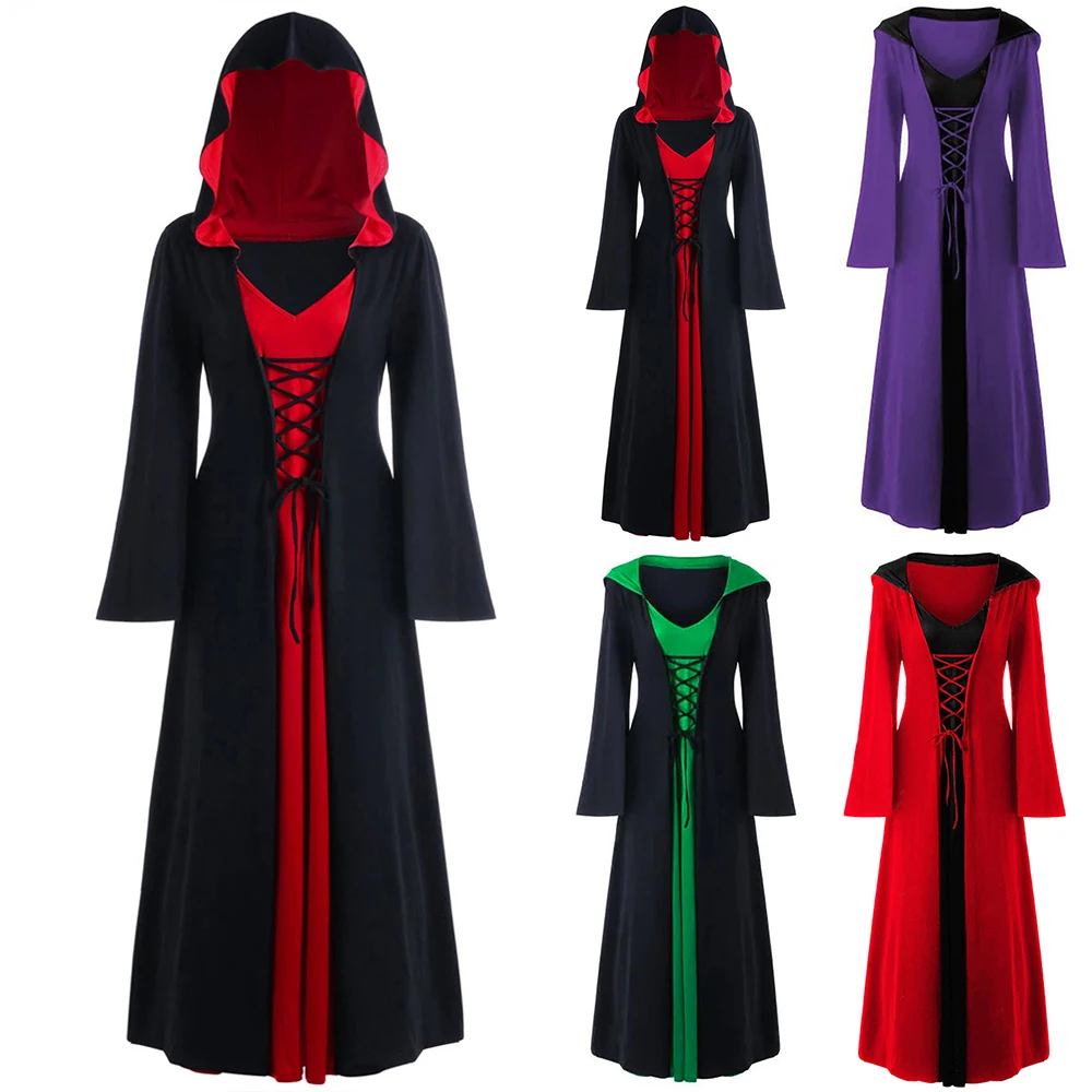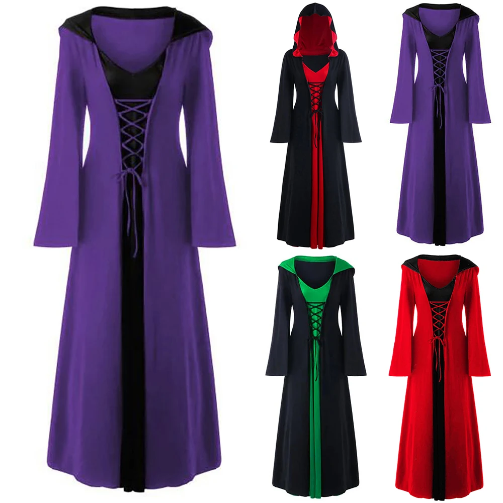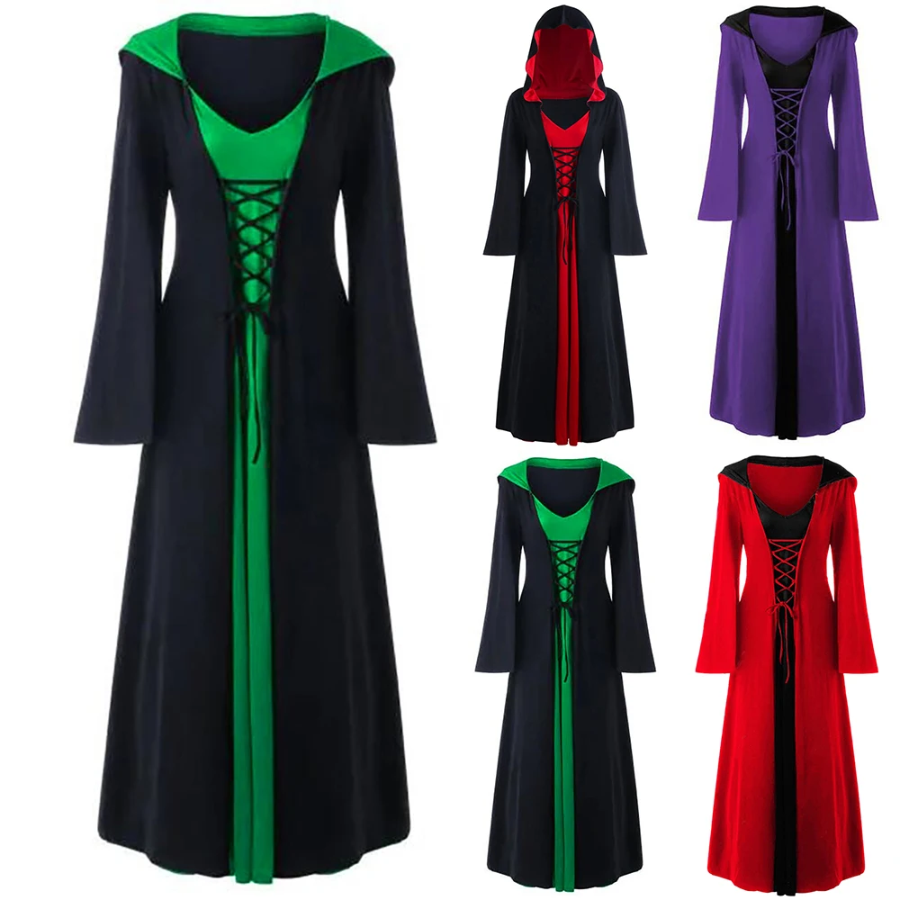 Женские костюмы на Хэллоуин, женское платье с капюшоном, лоскутное ...