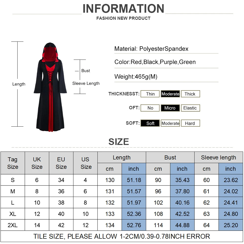 Женский готический костюм на Хэллоуин, платье с капюшоном и шнуровк...