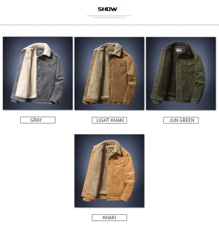 Зимняя мужская флисовая куртка большого размера, Вельветовая куртка...