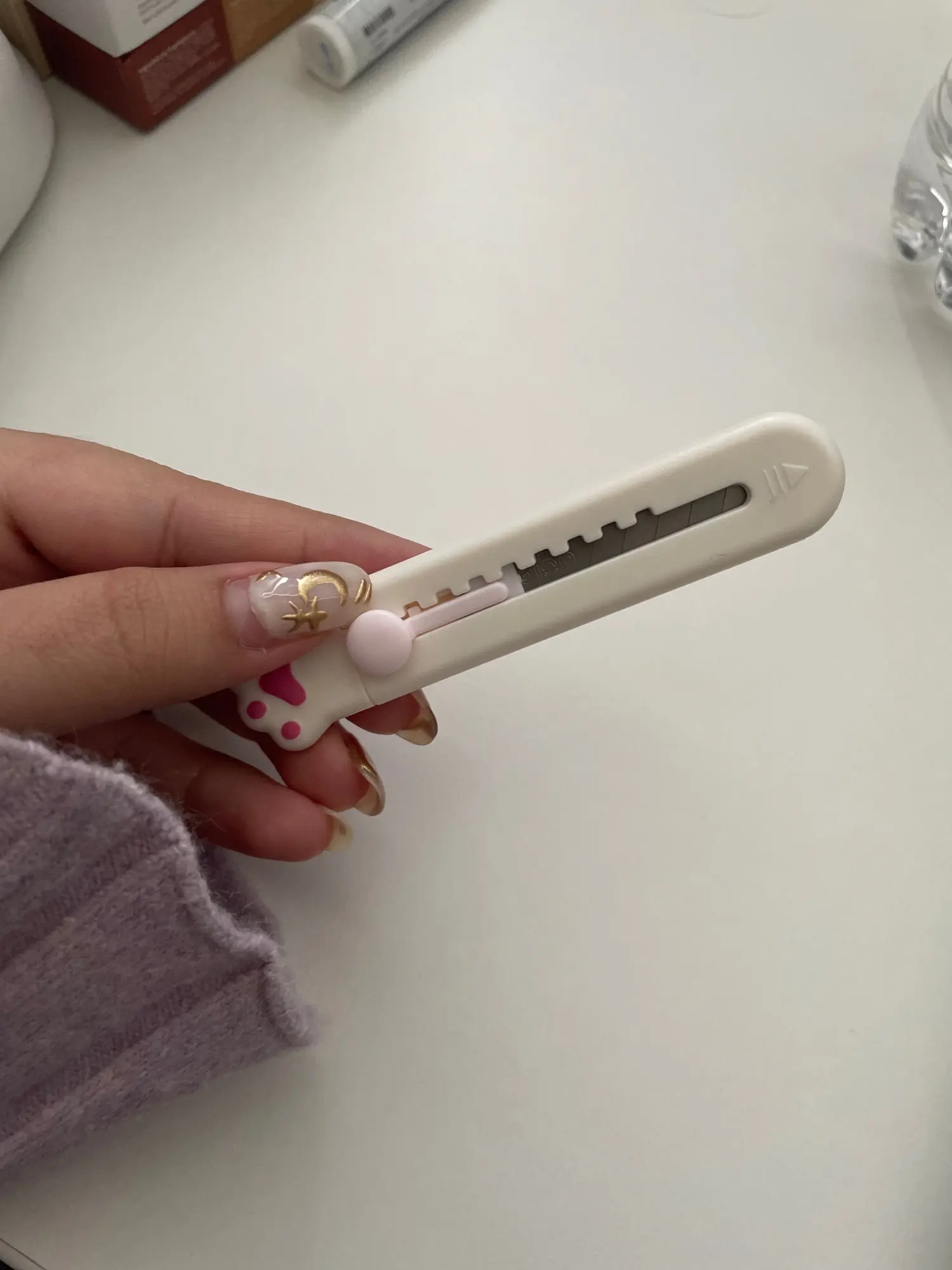Нож канцелярский портативный, в виде розовой лапы, Kawaii Офисные н...
