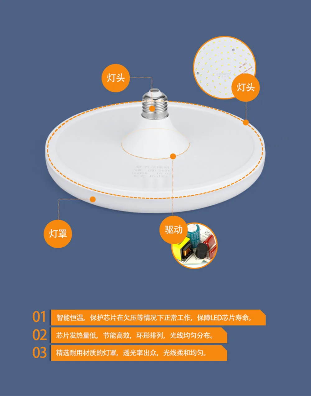 Особенности:1. Прочная герметизация (защита от комаров, защита от воды, защита от пыли)2. Абажур из поликарбоната (сильный светильник, мягкий светильник, яркий, без мерцания)3. Более длительный срок службы (драйвер постоянного тока не легко выгорает, высокотемпературная устойчивая огнестойкая пластина, хорошо подходит для рассеивания тепла, продлевает срок службы лампы)4. Применение: для внутреннего освещения; Освещение для гостиной; Гаражное или заводское освещение; Офисное освещение и т. д.