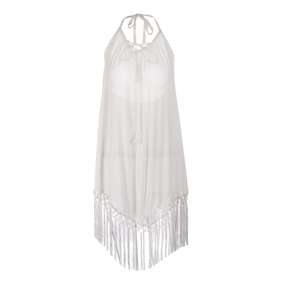 Пляжная накидка с бахромой в богемном стиле, белое бикини, длинный ...